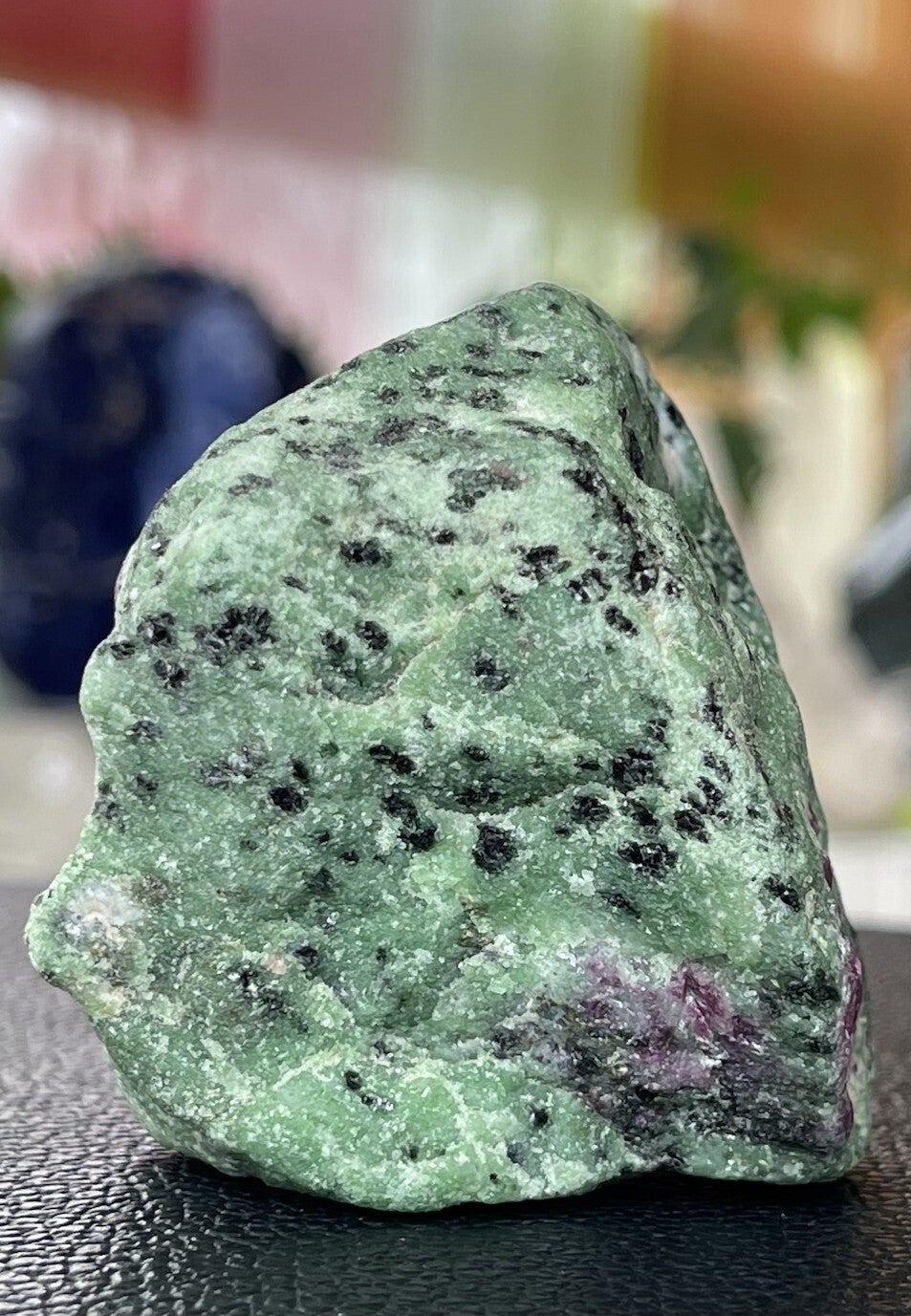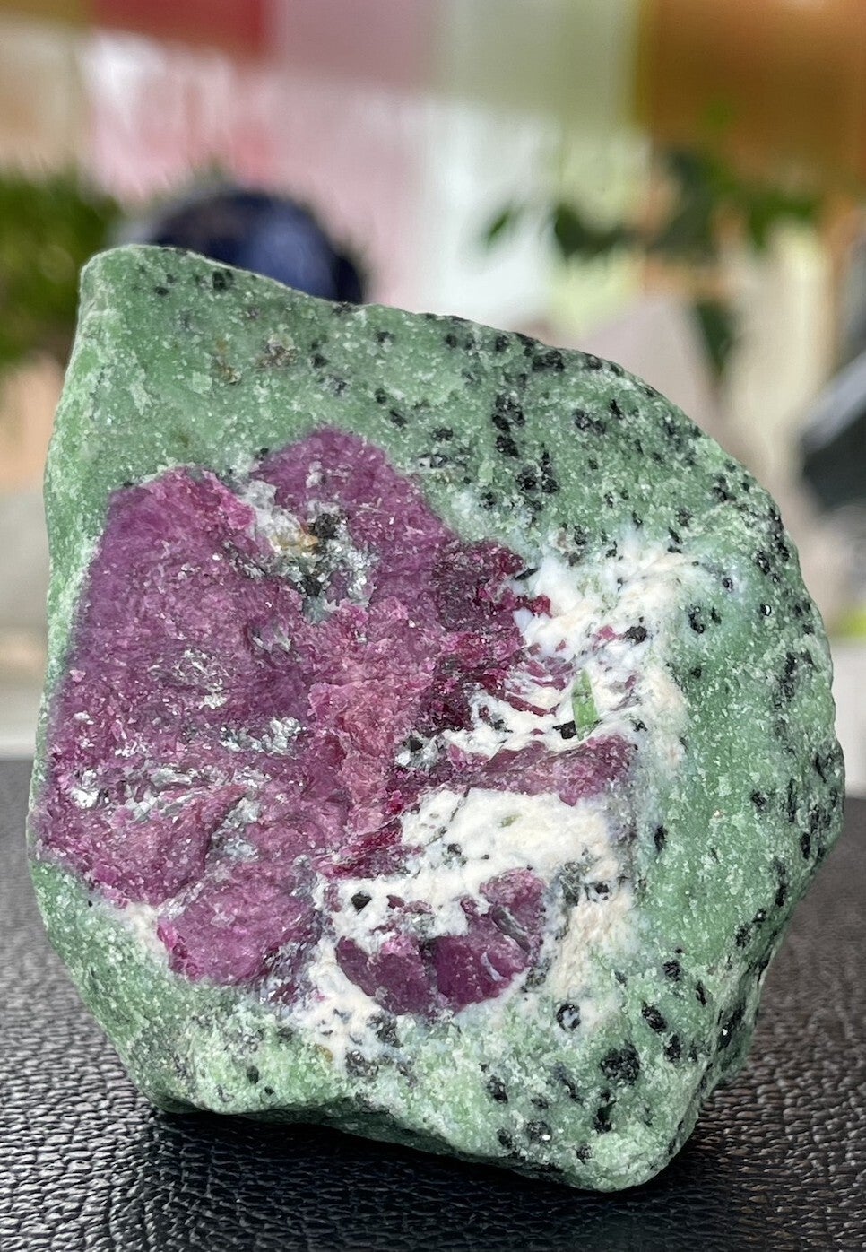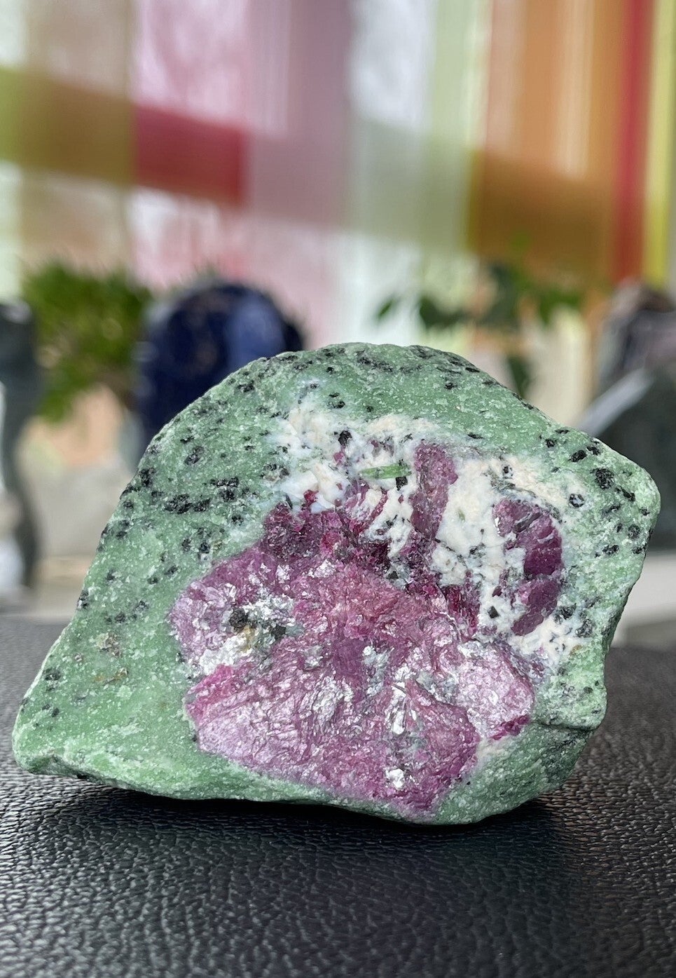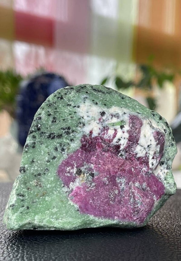 Robijn in Zoisiet is een spirituele en vitaliserende steen. De Zoisiet verzacht de eigenschappen van Robijn. De steen versterkt een gevoel van individualiteit maar ook van verbondenheid.