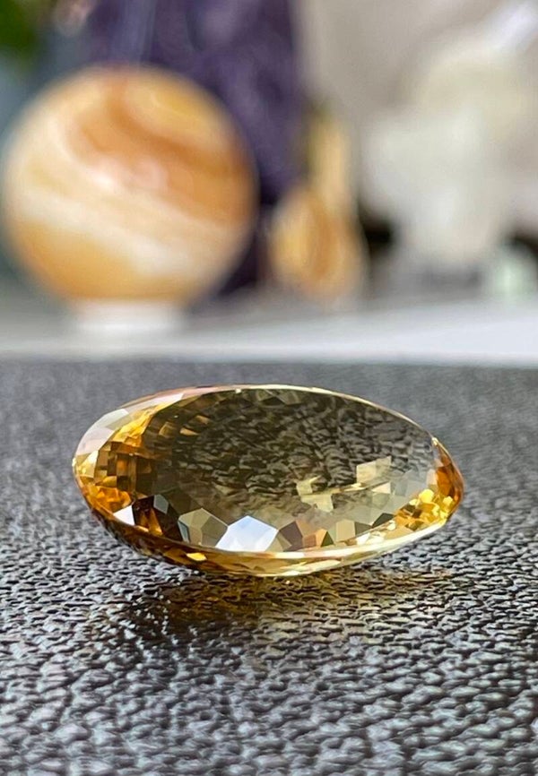 Prachtige Citrien edelsteen facet geslepen, langwerpig ovaal uit Brazilië, groot
