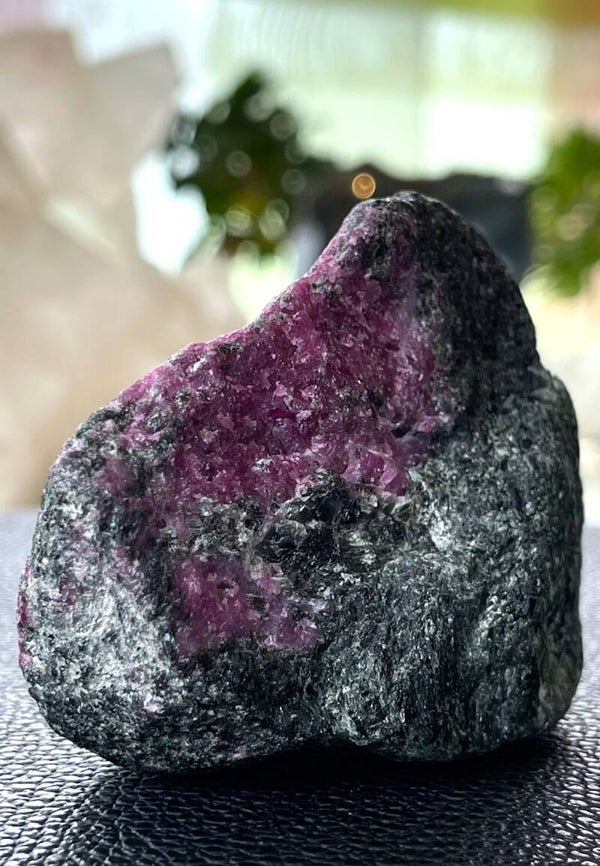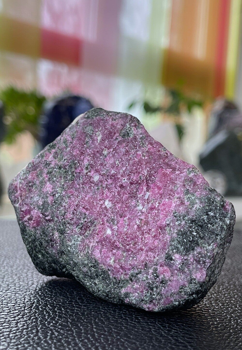 Ruw stukje Robijn in donkere Zoisiet uit Madagascar, medium