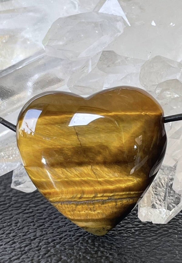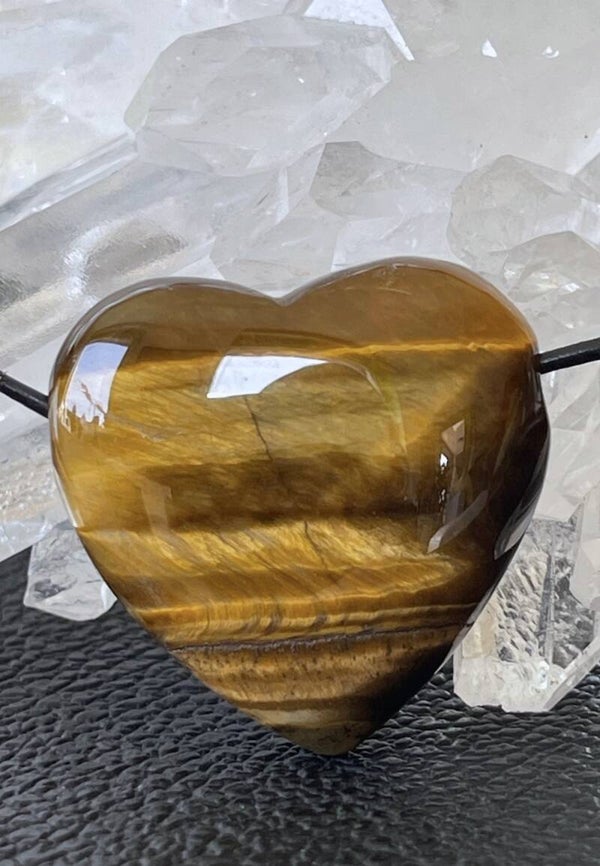 Tijgeroog hartje doorboorde hanger, met veter