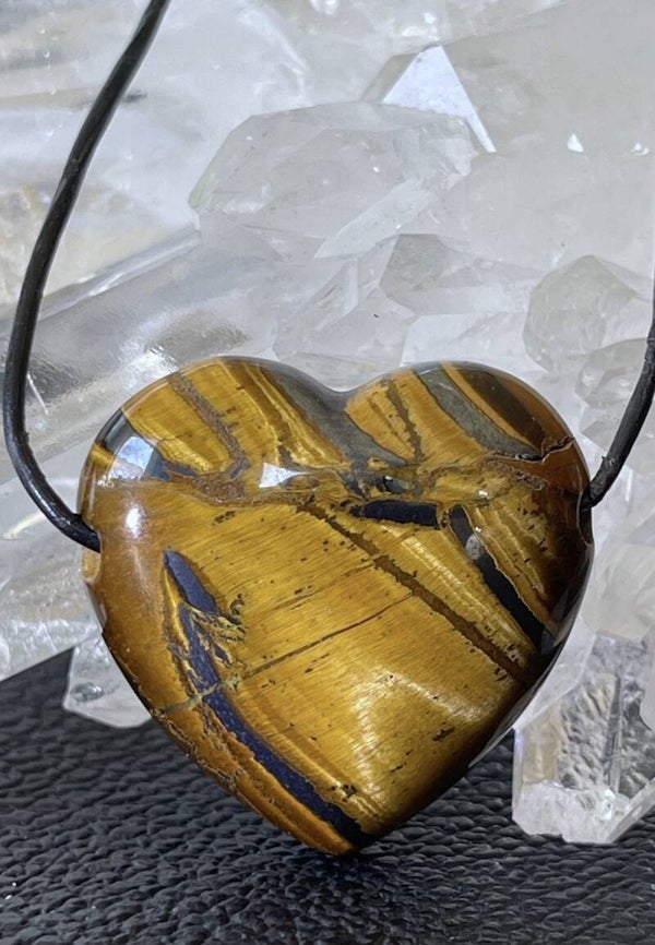 Tijgeroog met Tijgerijzer hartje doorboorde hanger, met veter
