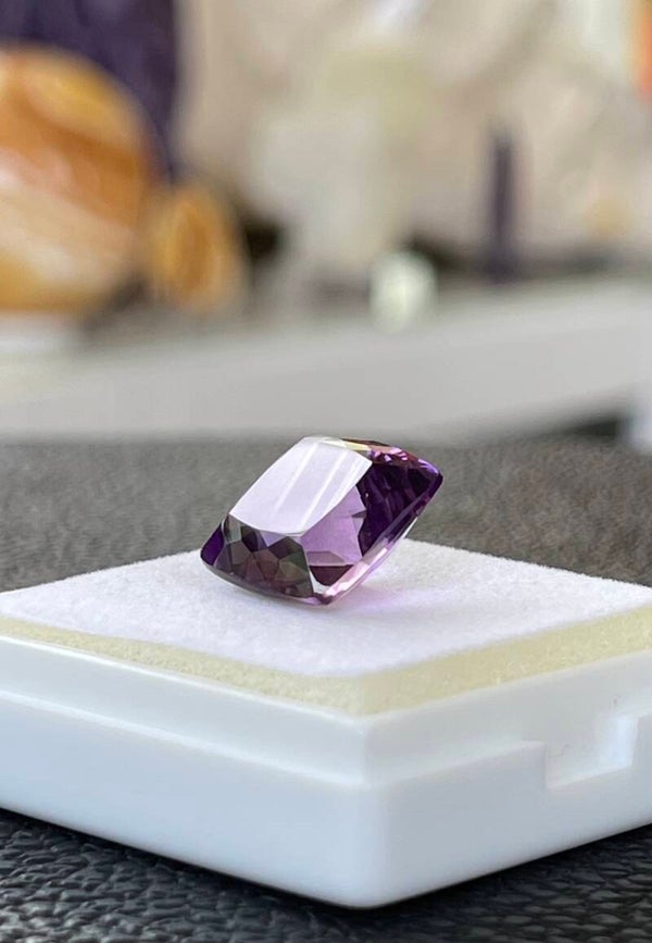 Brandenberg Amethist of Brandberg Amethist edelsteen facet geslepen cushion-vorm uit Namibië, medium