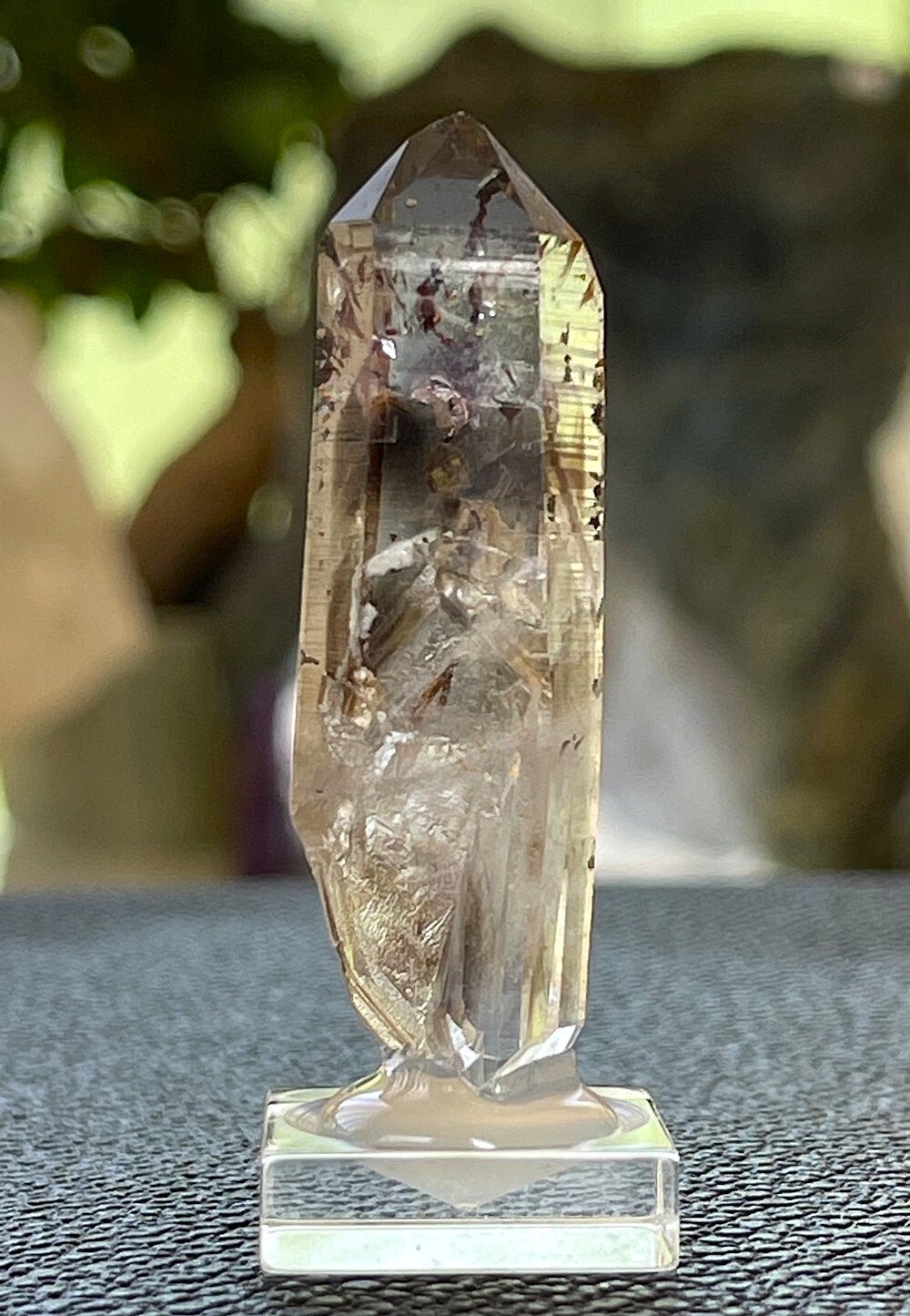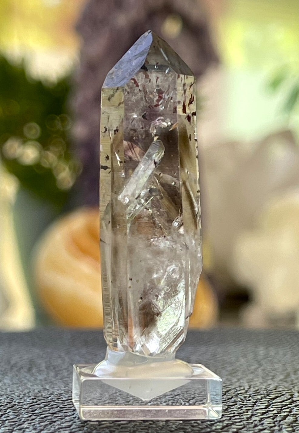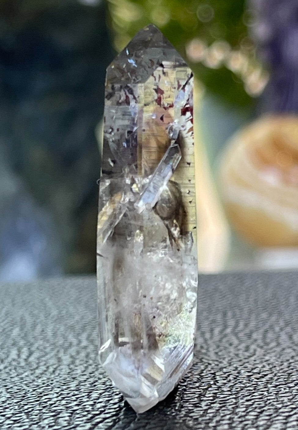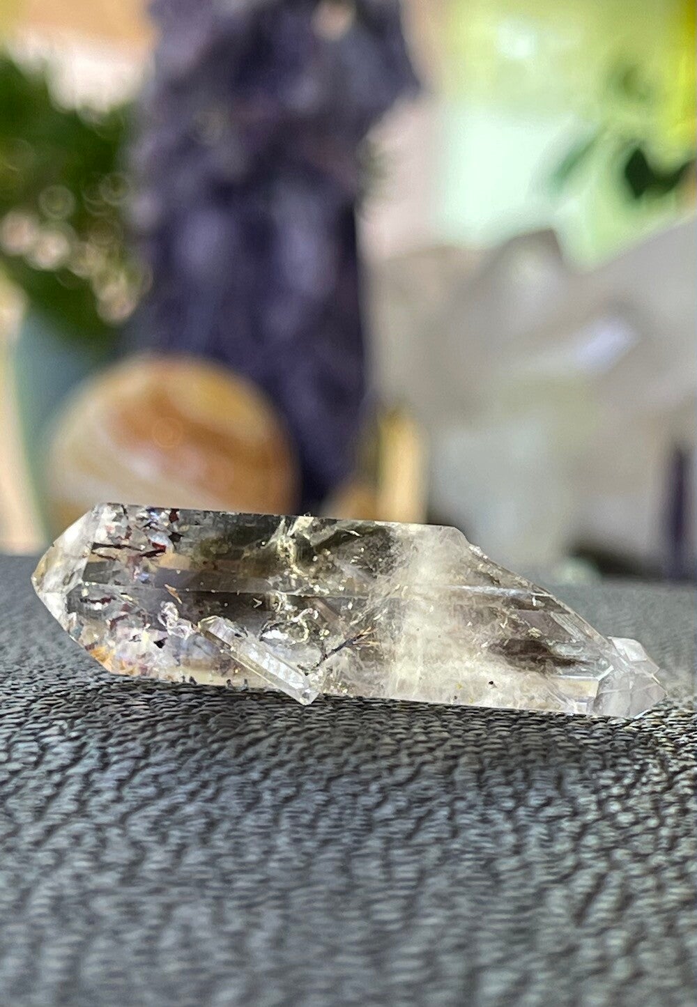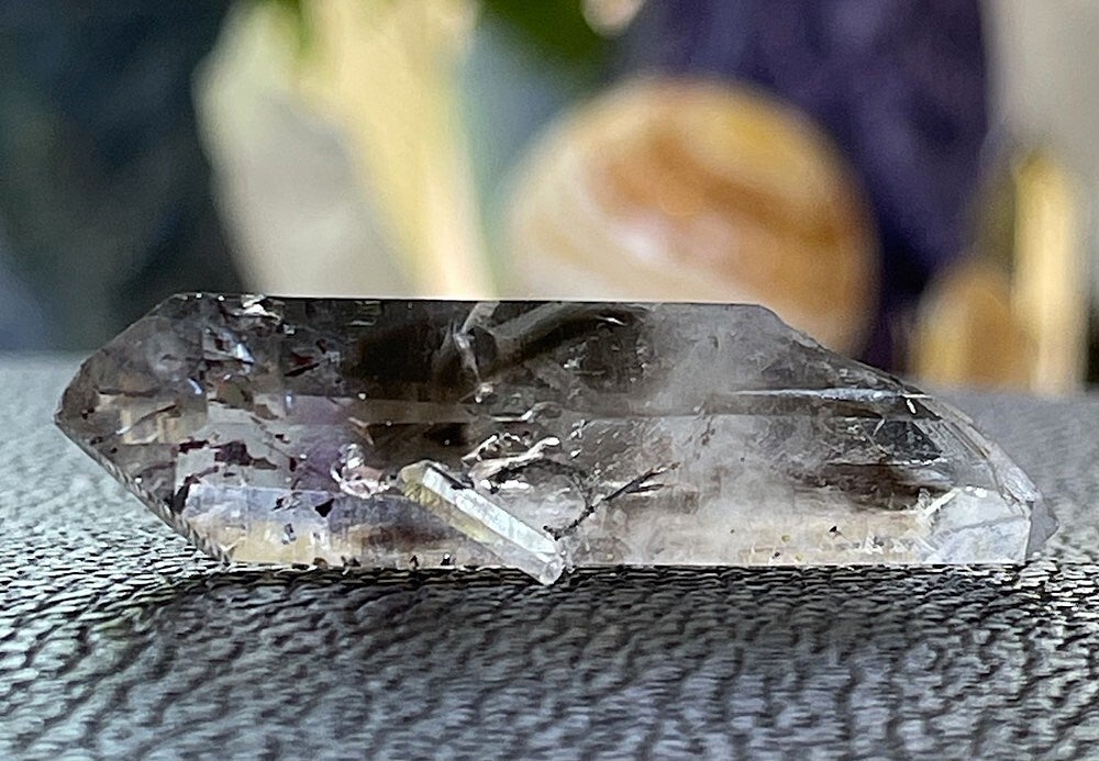 Heldere Amethist en Kristal met luchtbel dubbeleinder punt ruw uit Goboboseb Mountains, Erongo, Namibië, klein tot medium