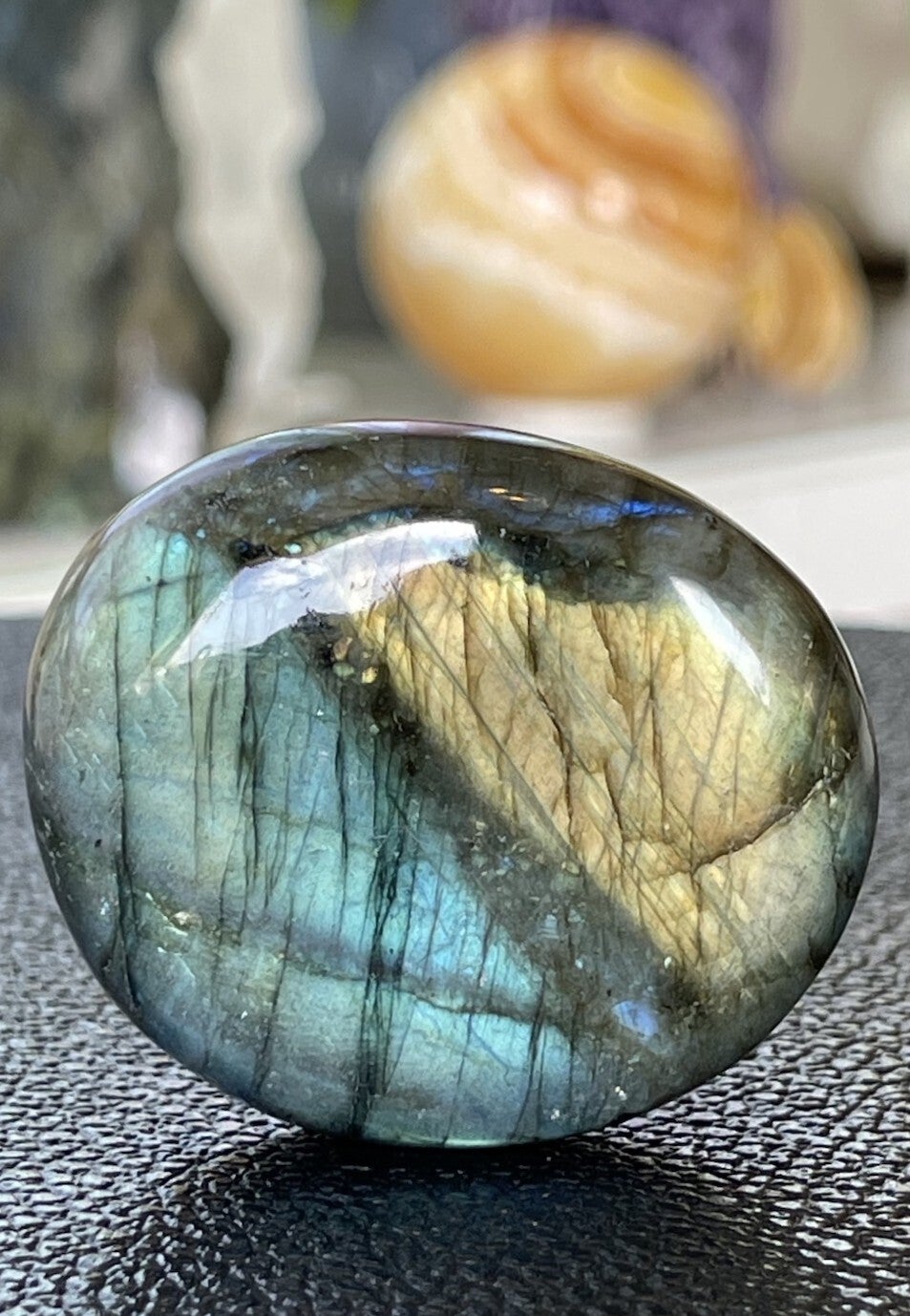 Labradoriet knuffelsteen plat