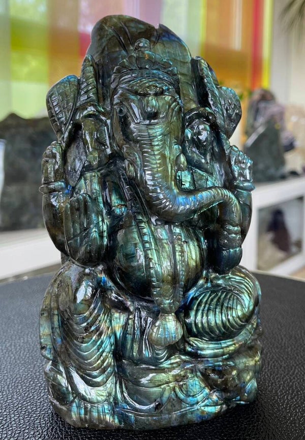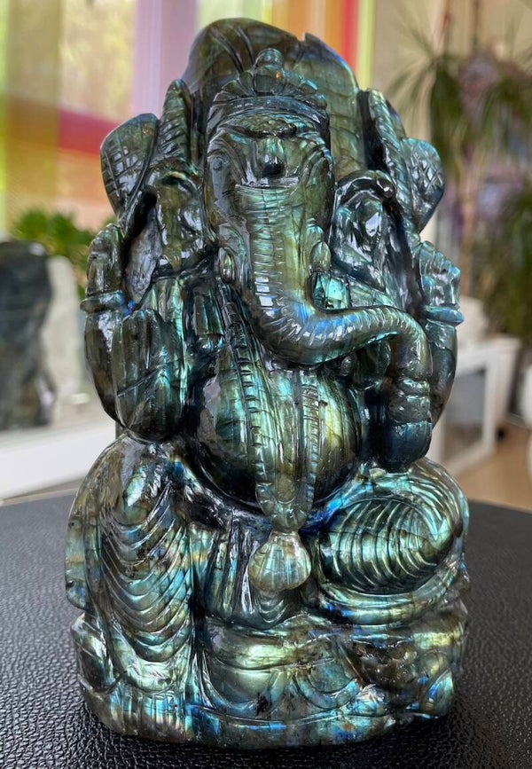Handgemaakte Ganesha van Labradoriet, statue uit India, groot
