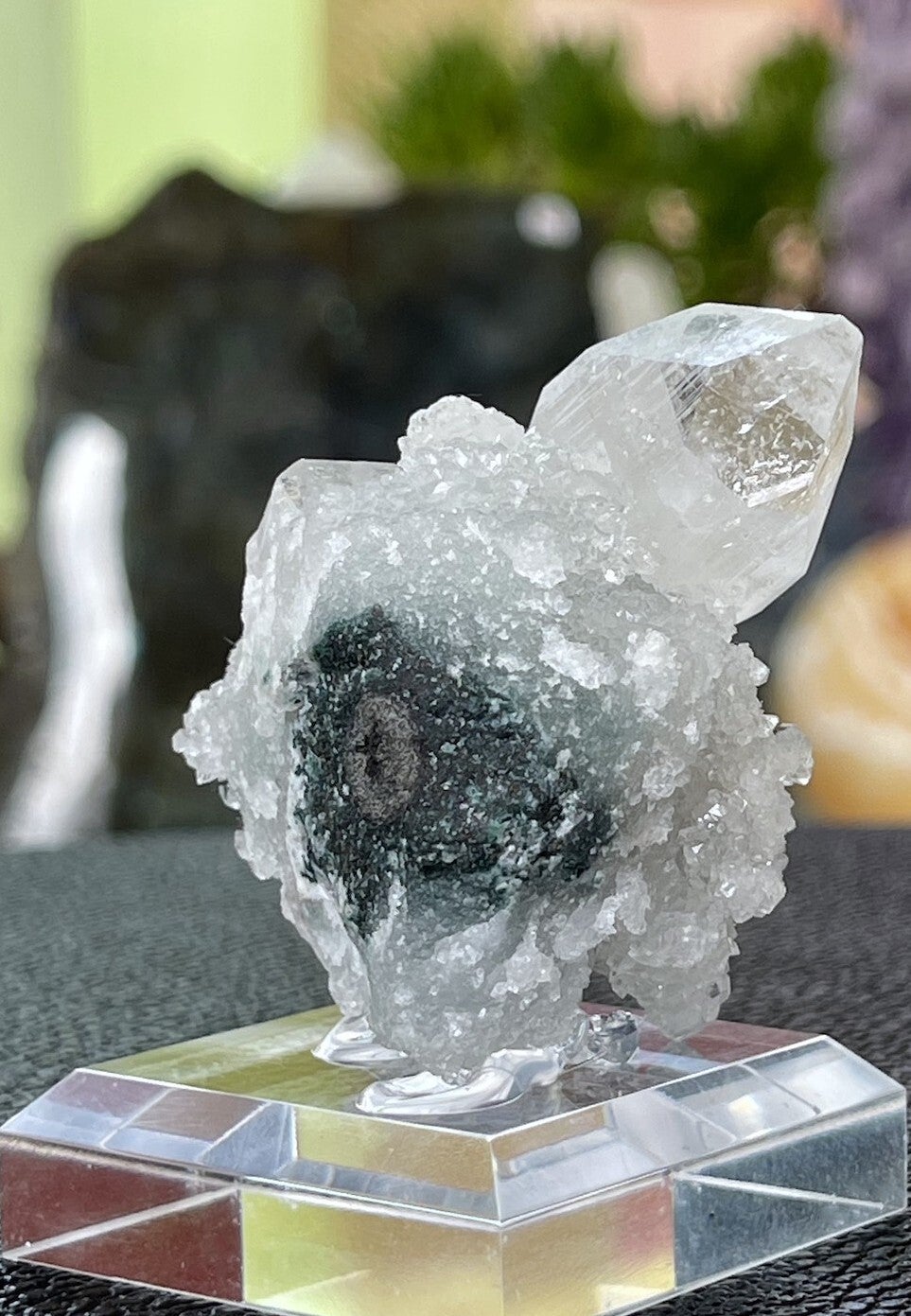 Apofylliet is ook een hele spirituele steen. Het helpt bij de geleiding van energieën en kan daarom heel goed gebruikt worden bij healings en energetisch werk zoals bijvoorbeeld reiki en quantum touch. Mediteren met deze steen geeft spirituele inzichten en kennis. Het werkt aardend bij astraal reizen.