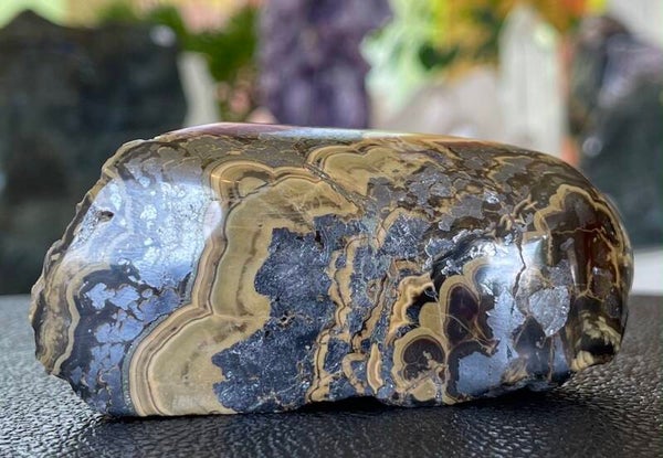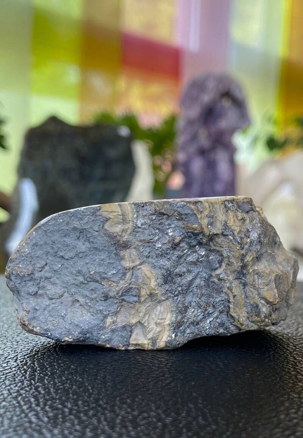 Mooi ruw stukje Schalenblende uit Kelmis, Luik, Wallonië België, aan één zijde gepolijst, medium tot groot