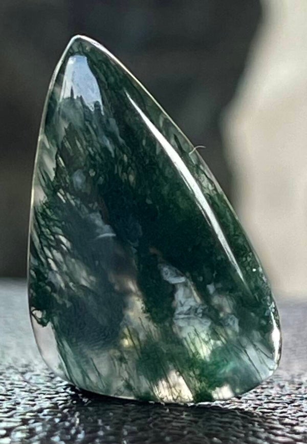 Mosagaat is dus heel geschikt om bij je te dragen ter ondersteuning van herstel na ziekte, om tot rust te komen na een periode met veel emotionele onrust of om weer tot jezelf te komen. De steen geeft je het gevoel op je plek te zijn en laat je ware ik naar boven komen. Het laat je de kern en wat écht belangrijk is om je heen en in jezelf zien. Oppervlakkigheden, vooroordelen en zaken die afleiden van de essentie vallen hierbij weg.