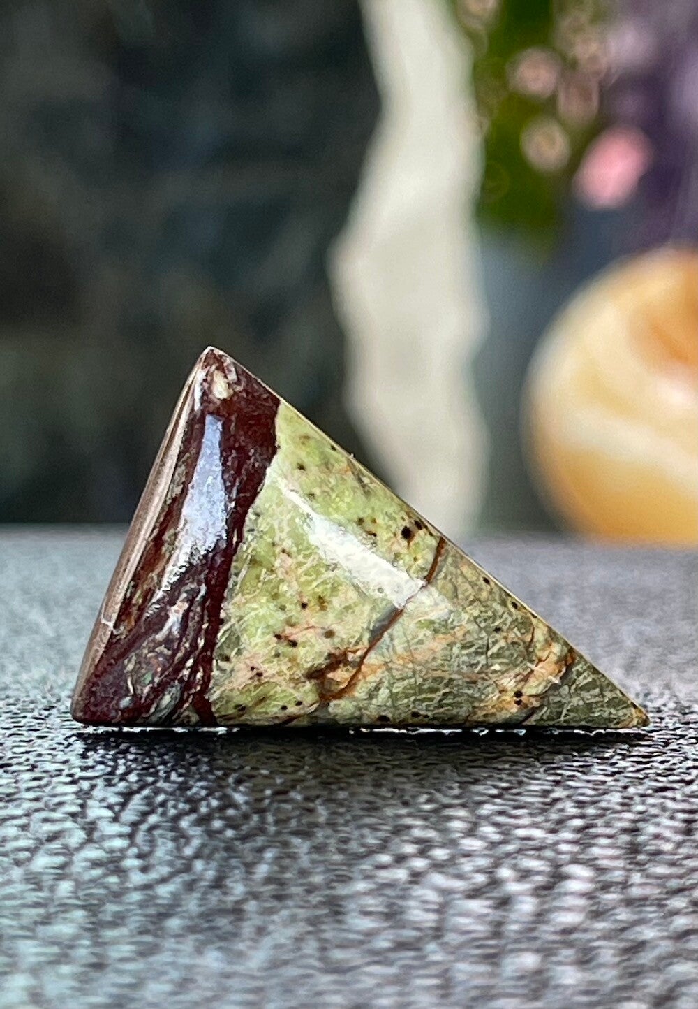 Jaspis edelsteen cabochon met vlakke achterkant driehoek, met soort boomtekening, medium