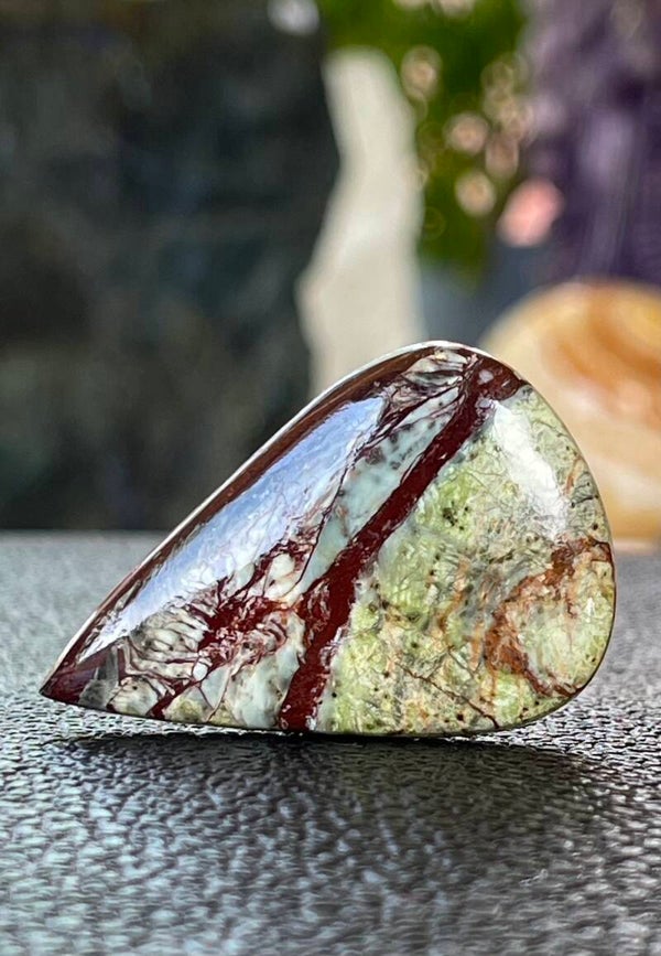 Jaspis edelsteen cabochon met vlakke achterkant druppel, met soort boomtekening, medium