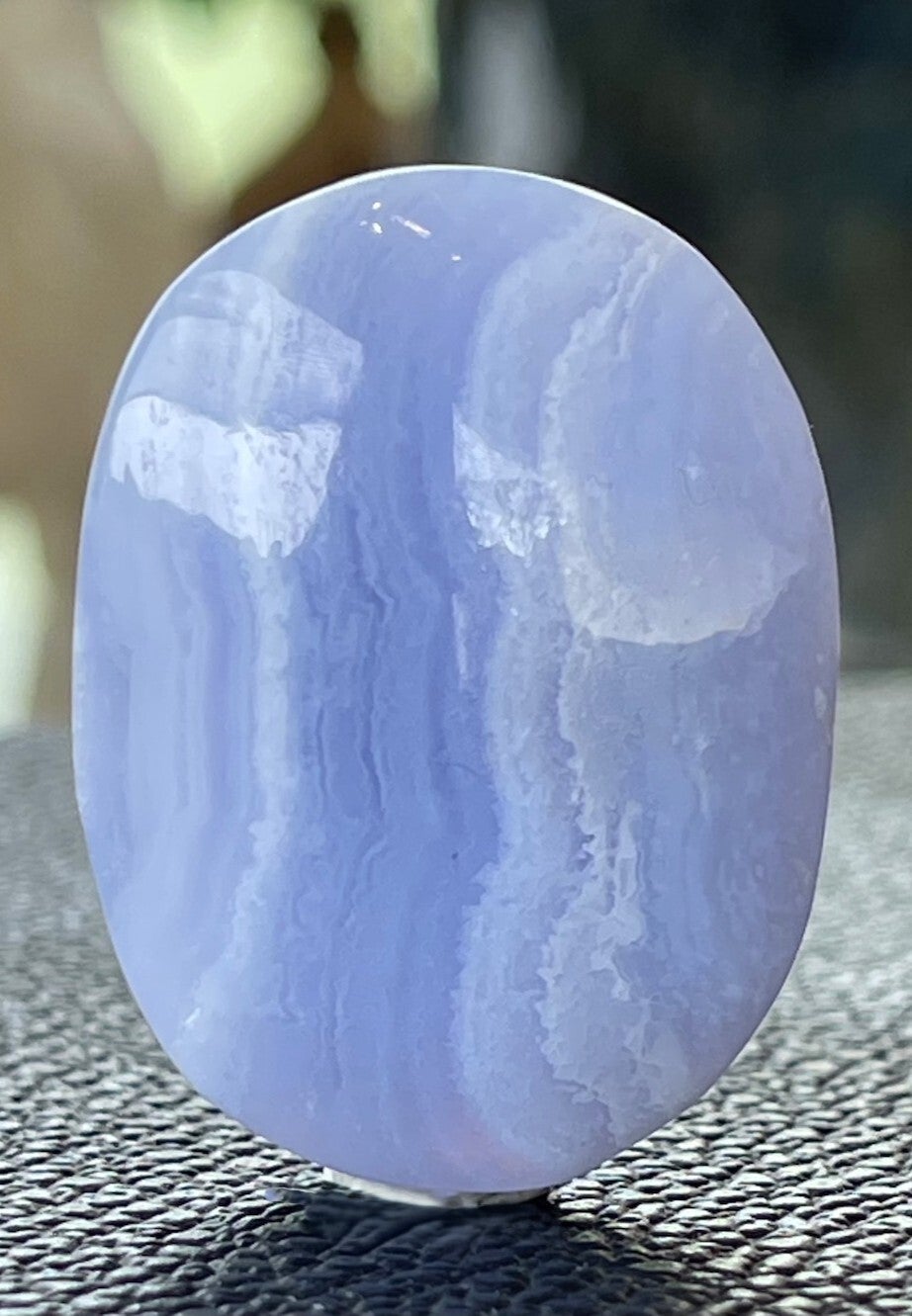 Blue Lace Agaat (gestreepte Chalcedoon) platte knuffelsteen of zaksteen, klein