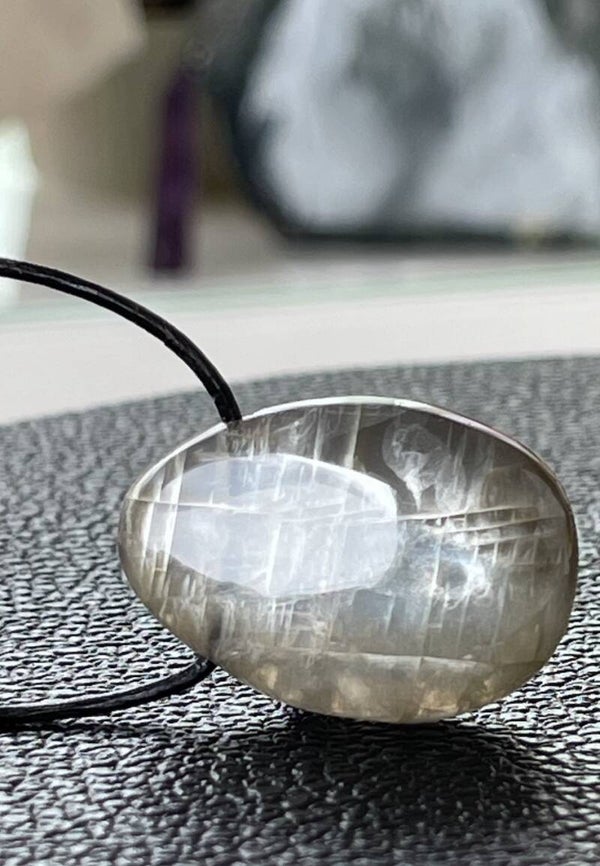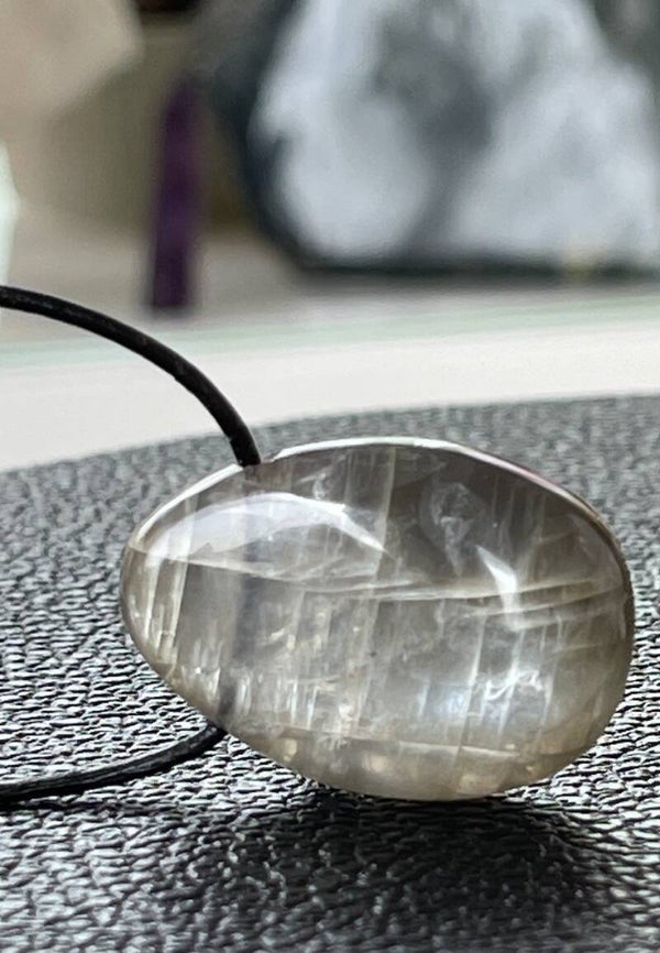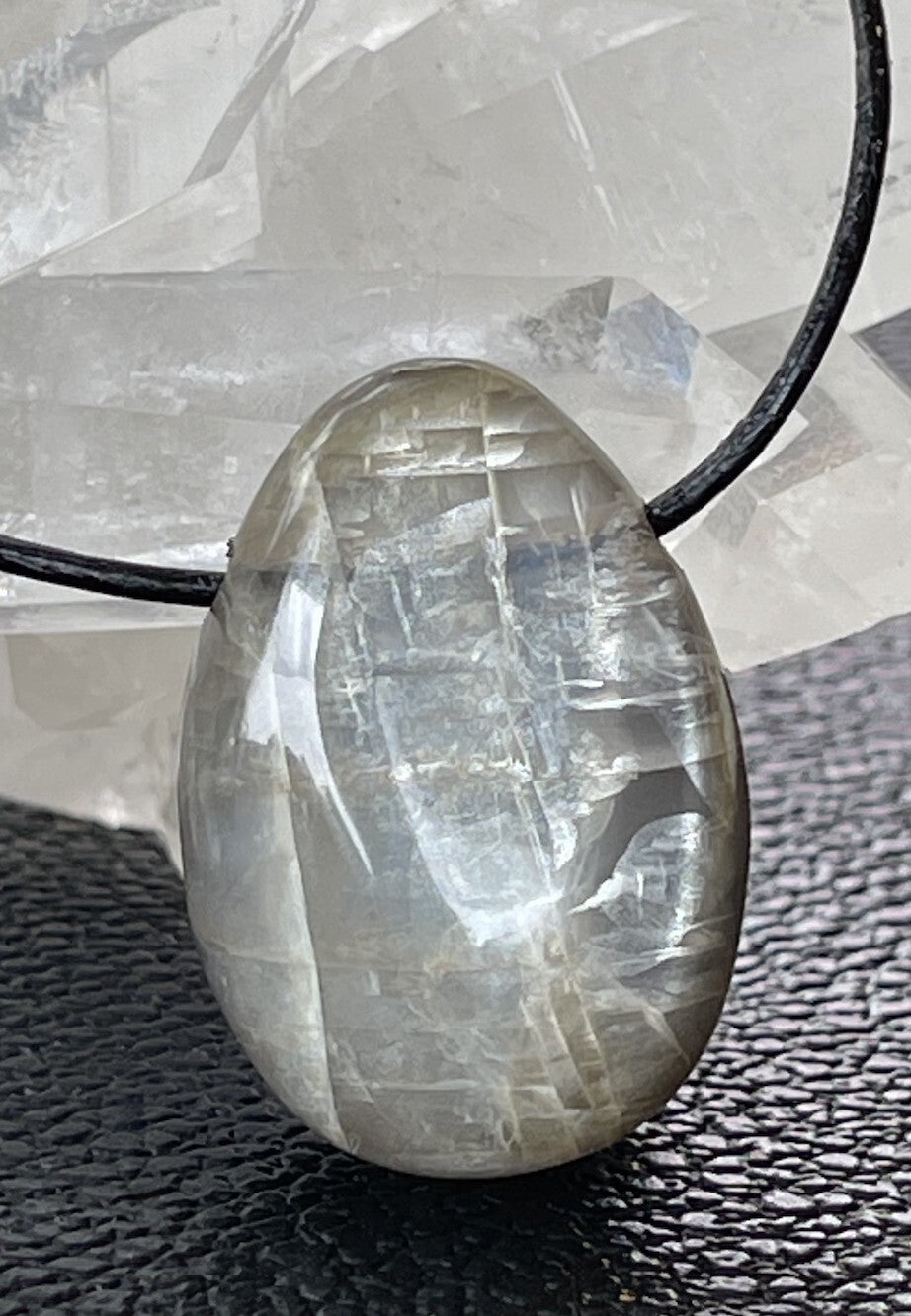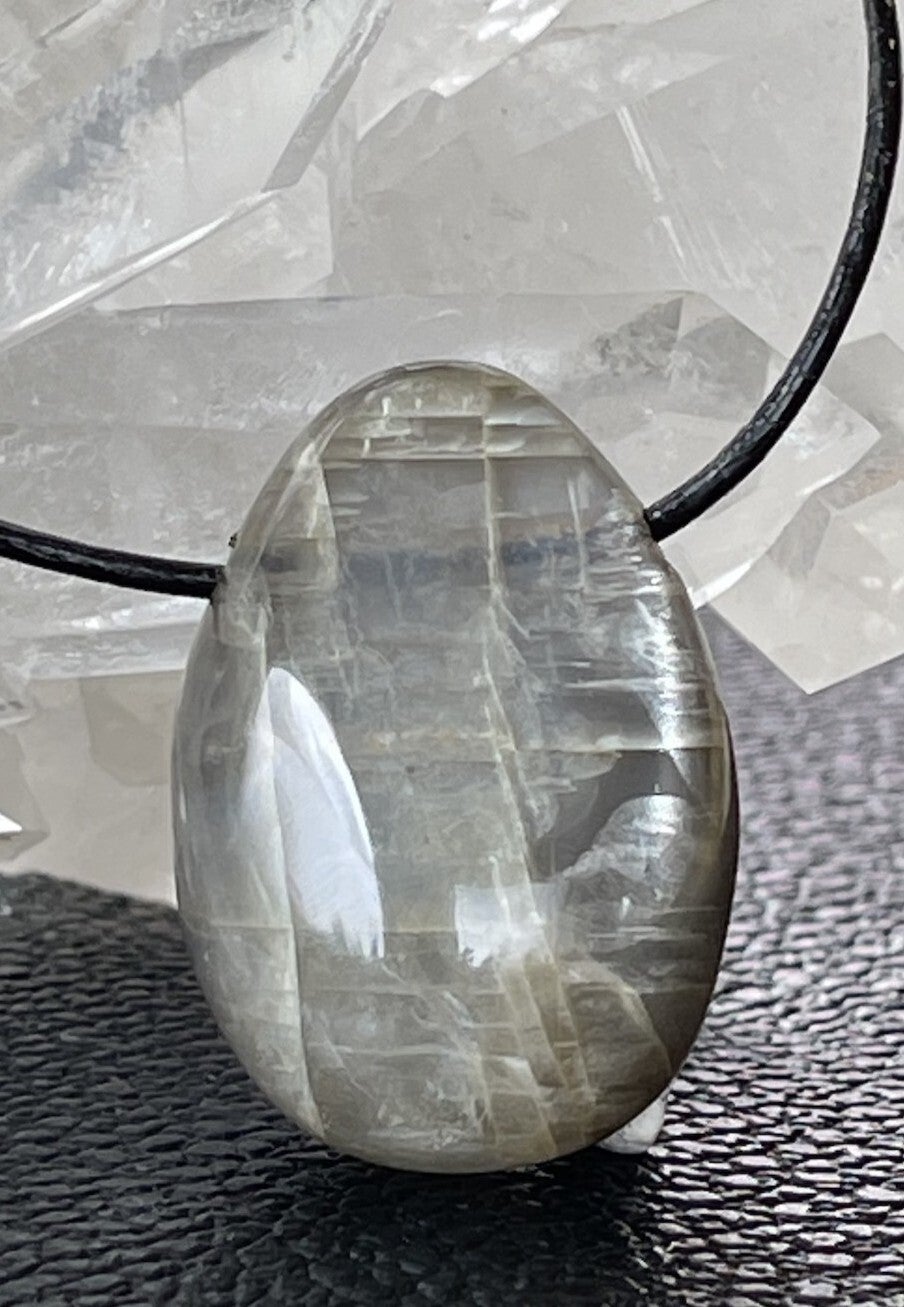 Zwarte of bruine Maansteen hanger doorboord, met veter