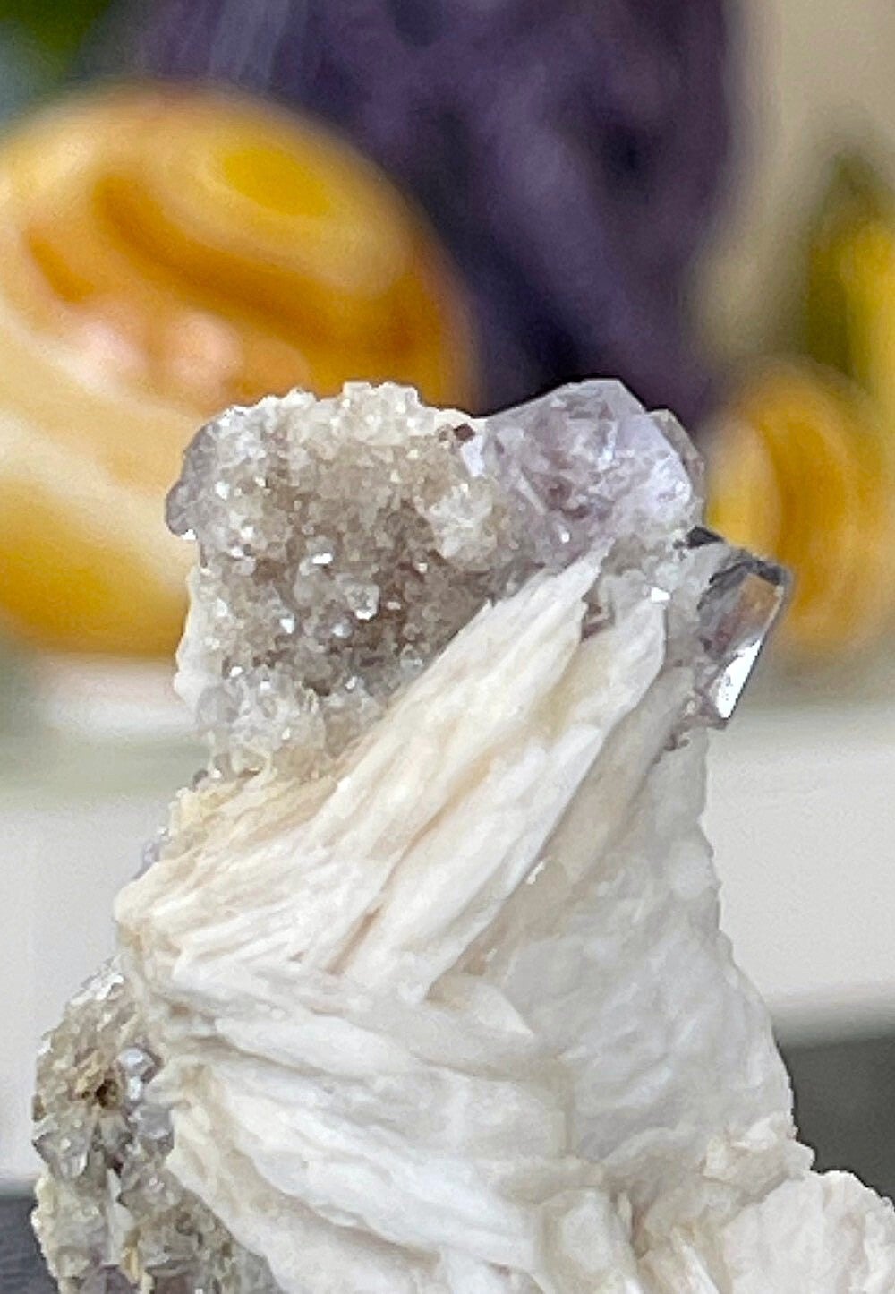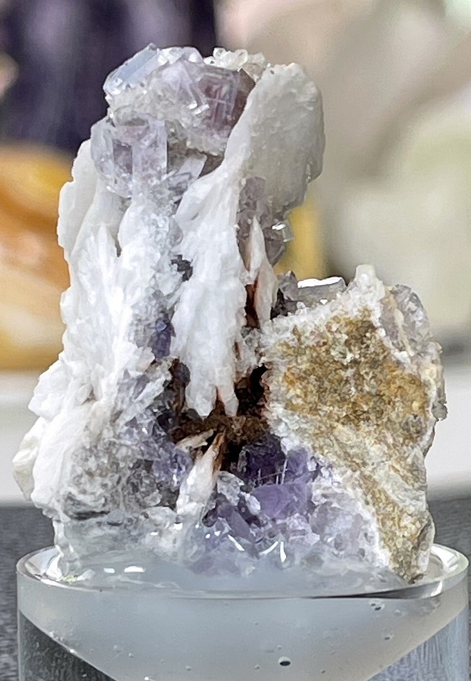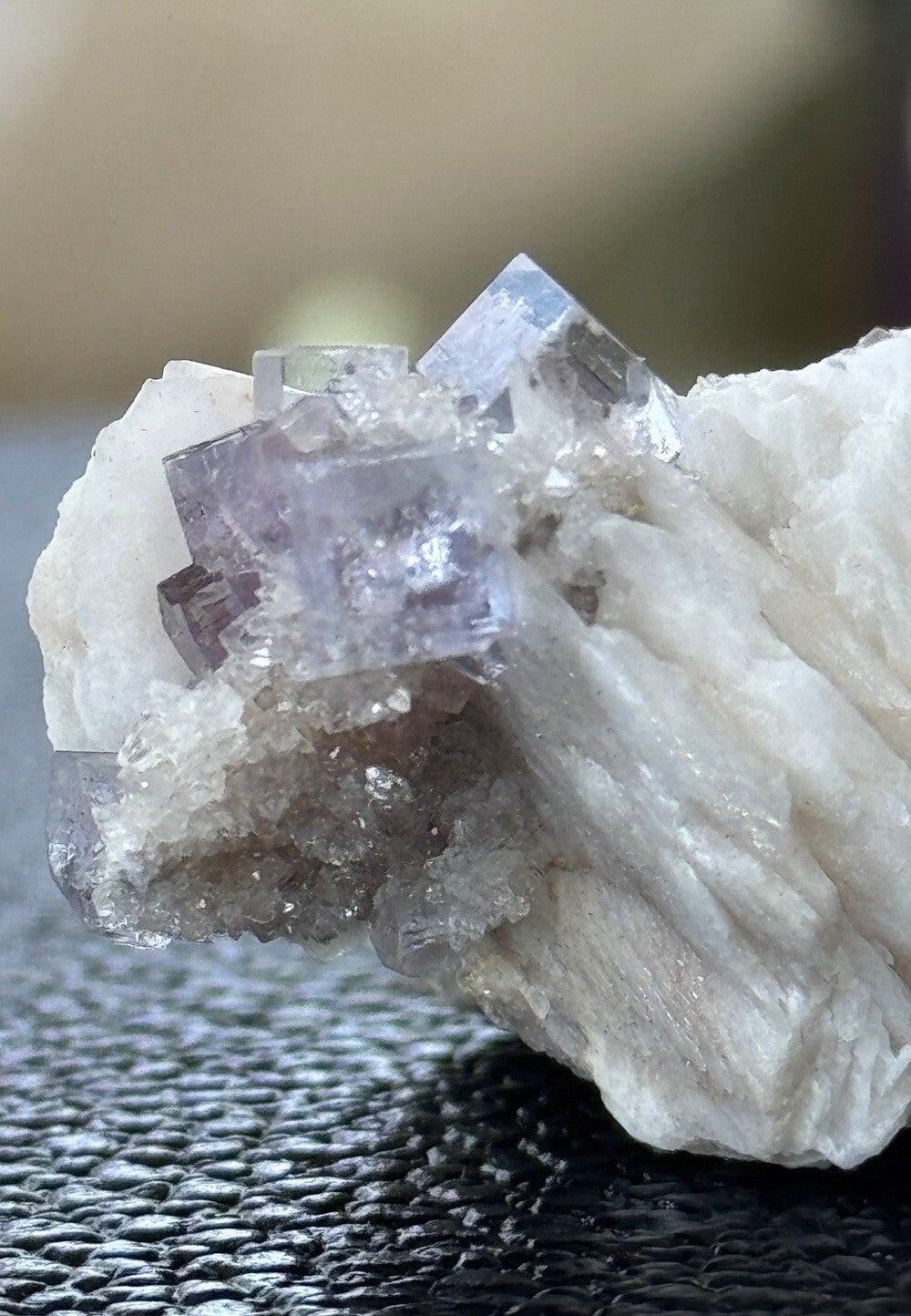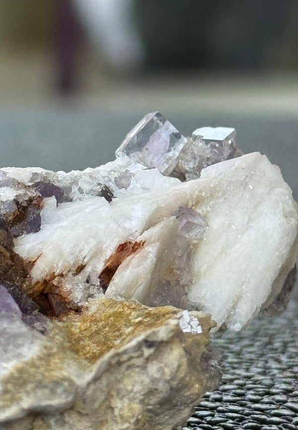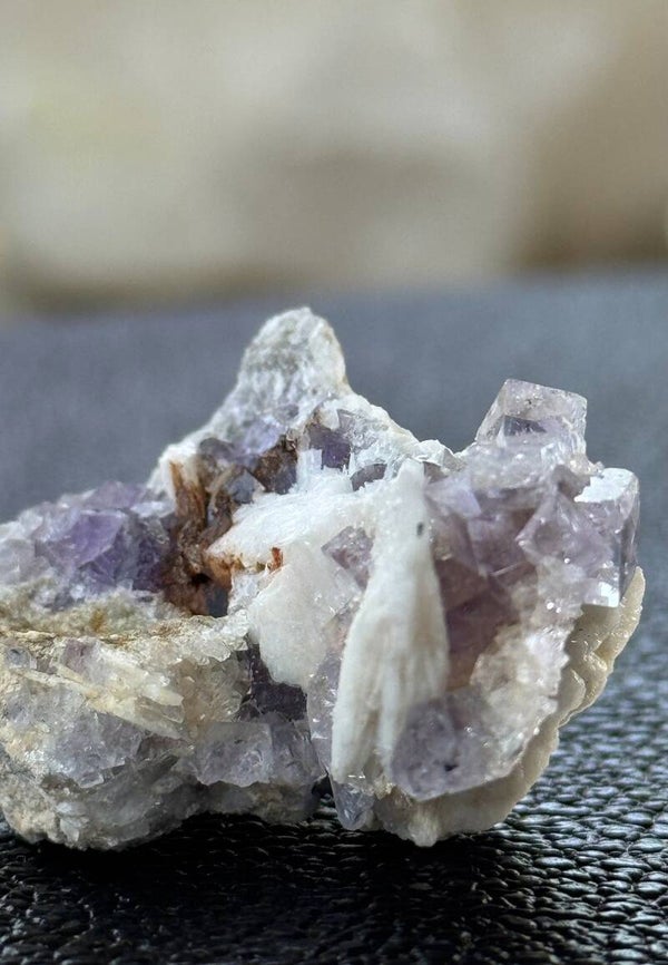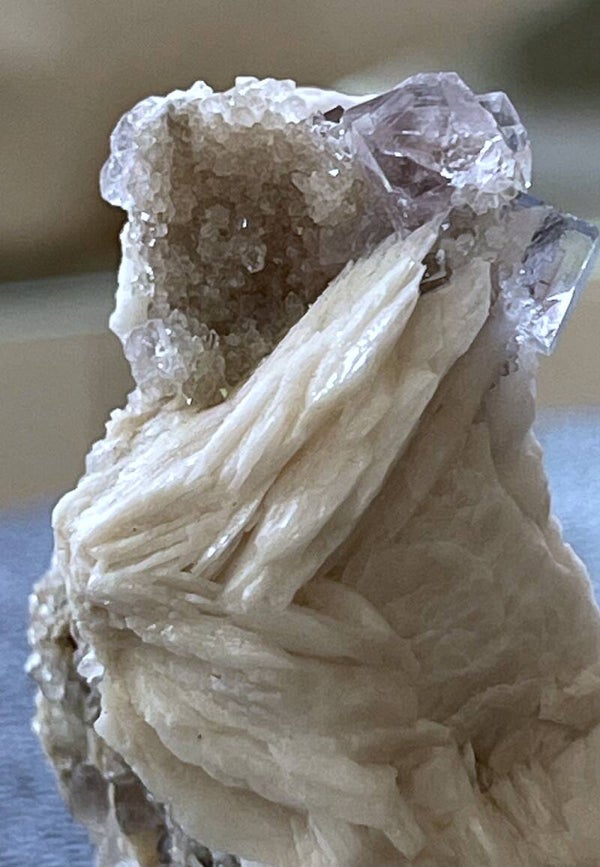 Fluoriet en Bariet met paarse Fluoriet kubusjes uit Spanje, klein-medium