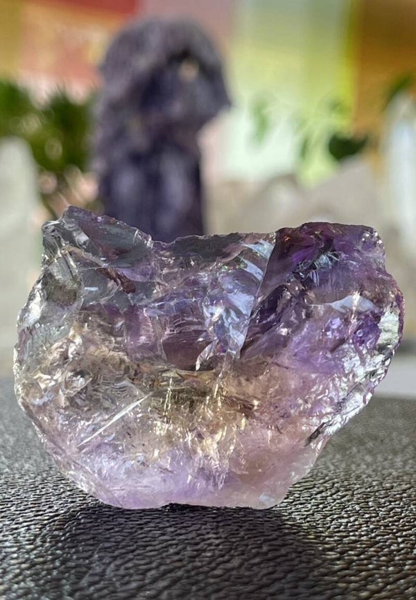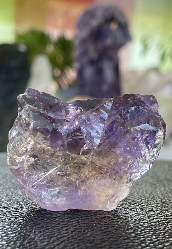 Ametrien bestaat uit een combinatie van Amethist en Citrien en verenigt de eigenschappen van deze twee stenen in zich. De opbeurende en verwarmende energie van Citrien en de beschermende en zuiverende werking van Amethist. Geeft innerlijke rust en gelatenheid.