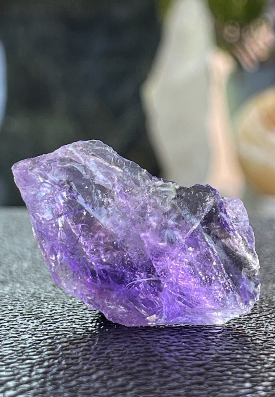 Ametrien bestaat uit een combinatie van Amethist en Citrien en verenigt de eigenschappen van deze twee stenen in zich. De opbeurende en verwarmende energie van Citrien en de beschermende en zuiverende werking van Amethist. Geeft innerlijke rust en gelatenheid.
