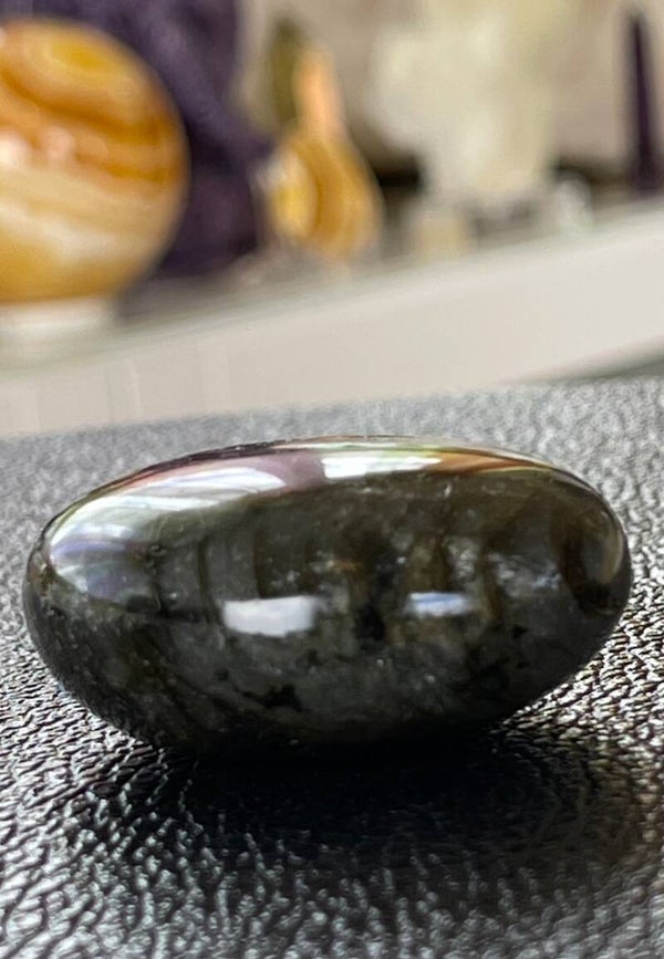 Labradoriet knuffelsteen plat, groot
