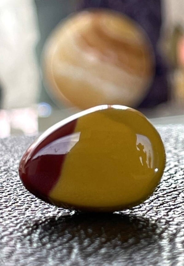 Daarnaast geeft de steen zelfvertrouwen, eigenliefde en daadkracht. Tevens helpt hij bij het verwerken van oude, zware emoties. Mookaïet lost ook karmische blokkades op, zoals verlies en liefdesverdriet en geeft weer eigenliefde, daadkracht en inzicht om opnieuw te beginnen.