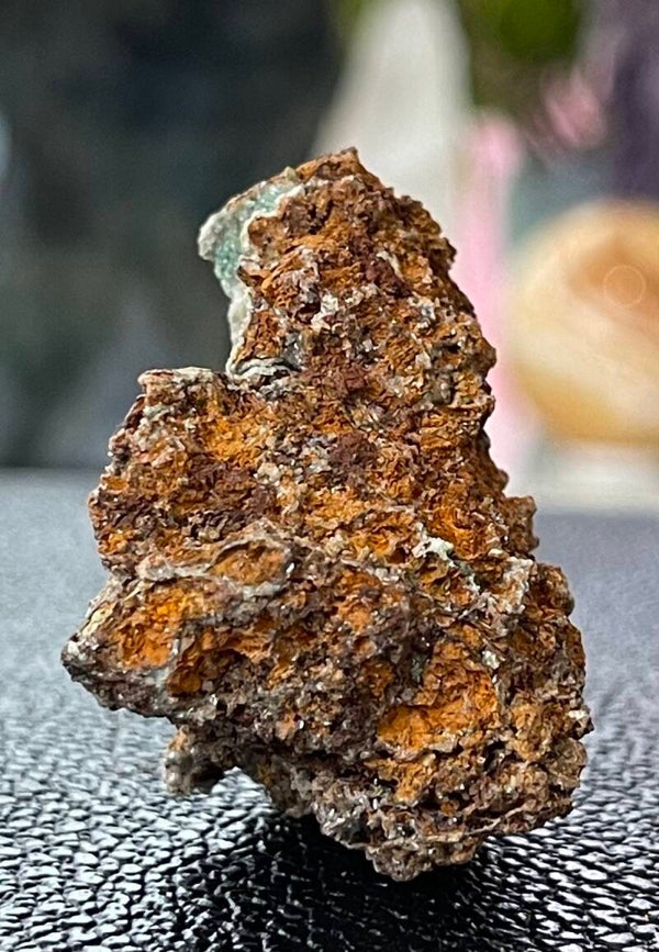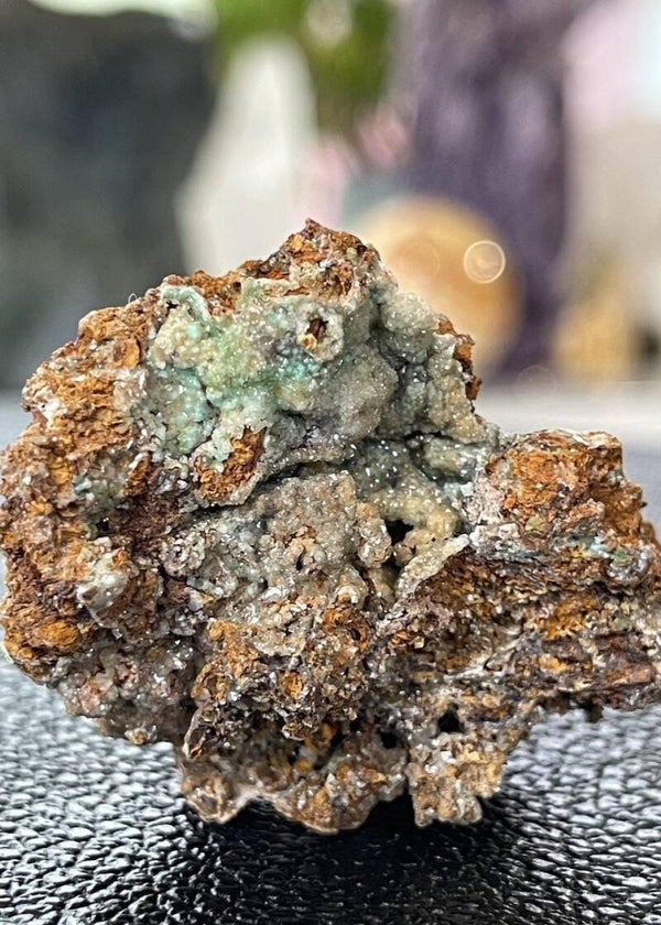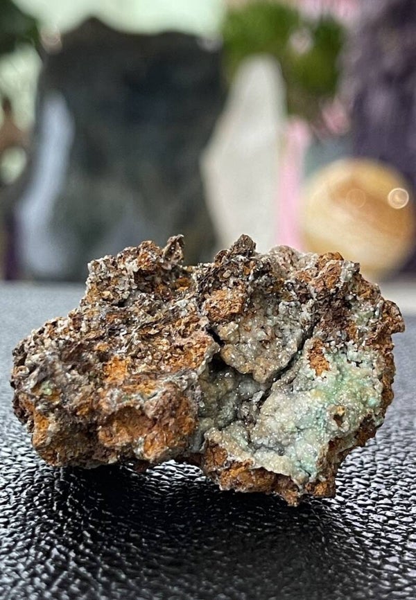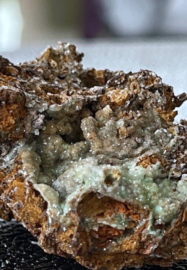 Ruw stukje Limoniet met Adamiet kristallen uit Hilarion mijn, Kamareza, Attika, Griekenland, klein tot medium