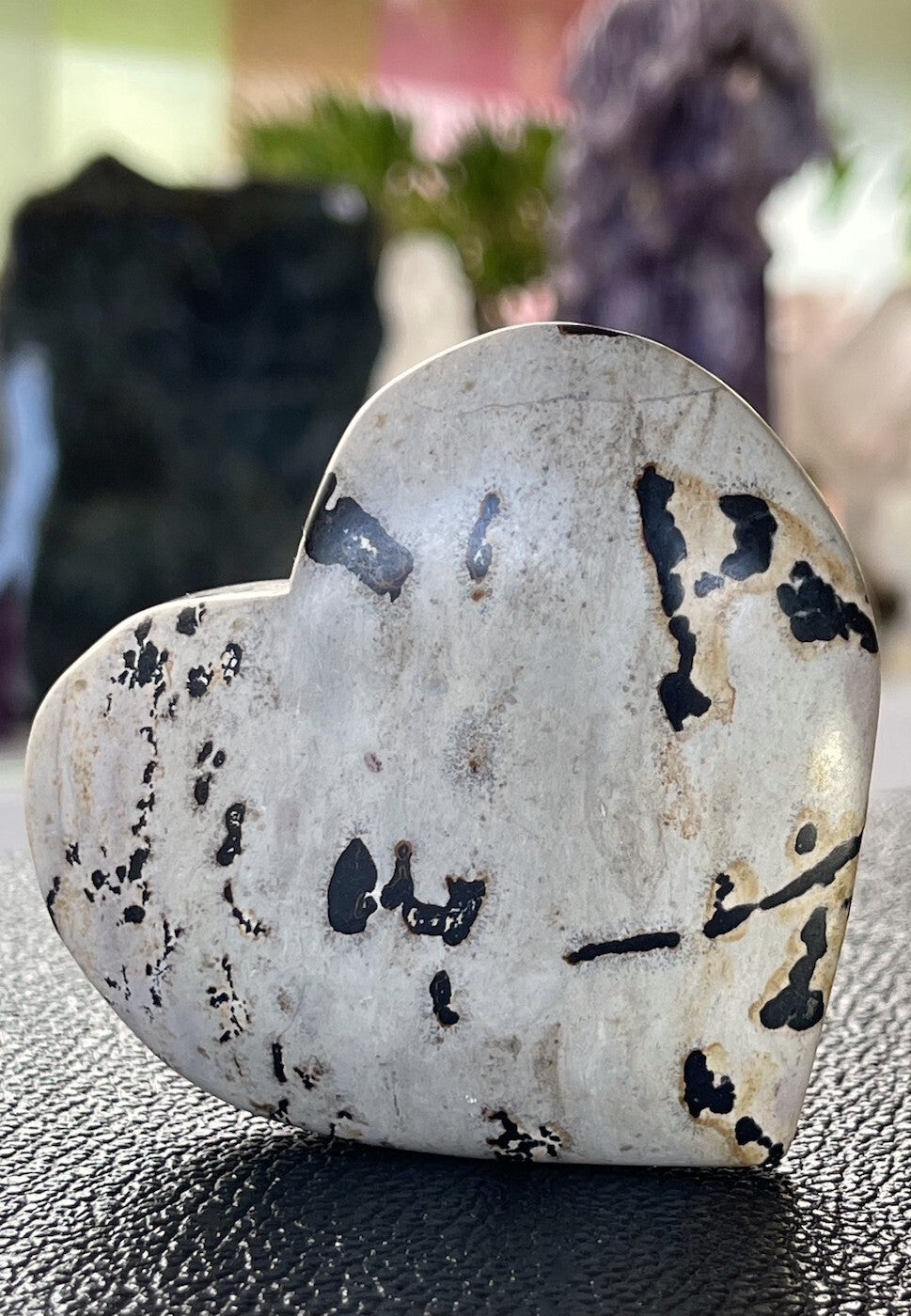 Dendriet Jaspis is een steen die ervoor zorgt dat je actief in het leven staat. Hij werkt aardend en geeft je wilskracht. Hij helpt bij het doorbreken van blokkades bij je onderste chakra's. Het is een steen die je lichaam voorziet van warmte en energie.
