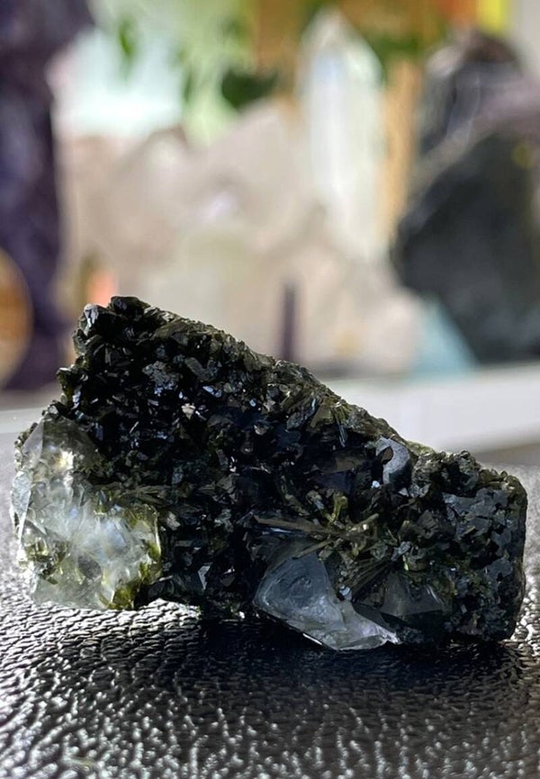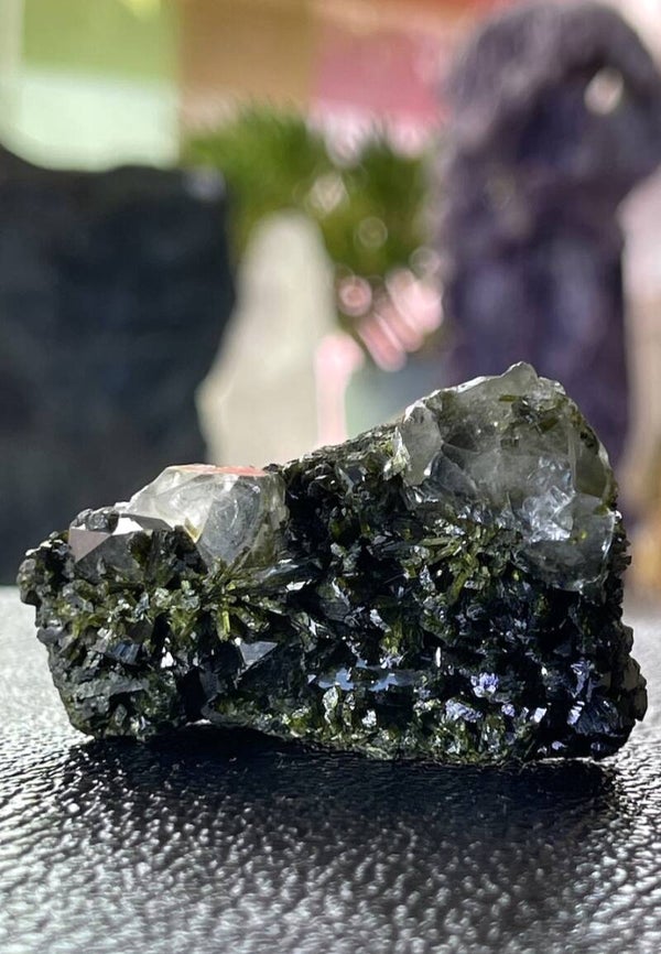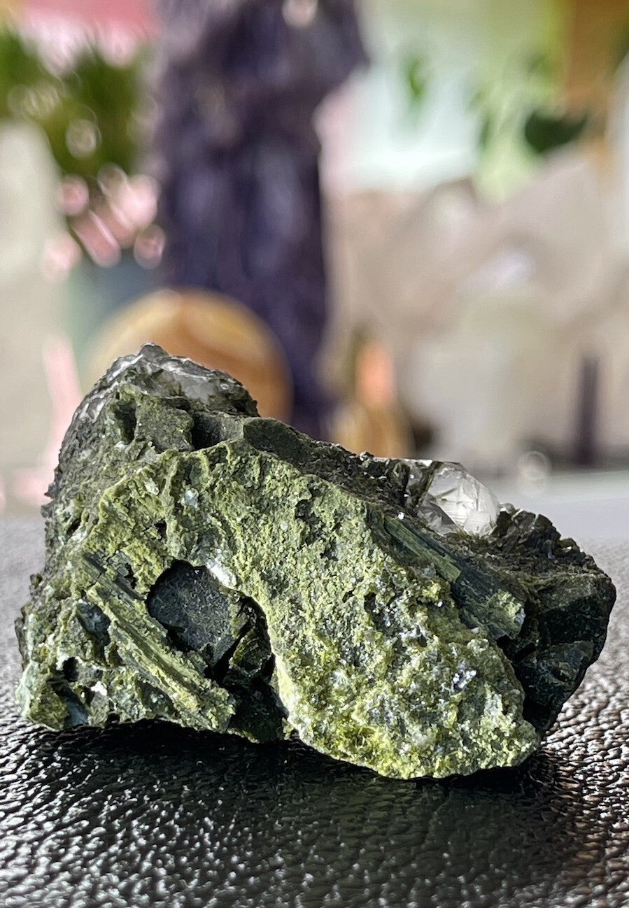 Prachtig ruw stukje Epidoot met Kwarts uit Turkije, klein tot medium