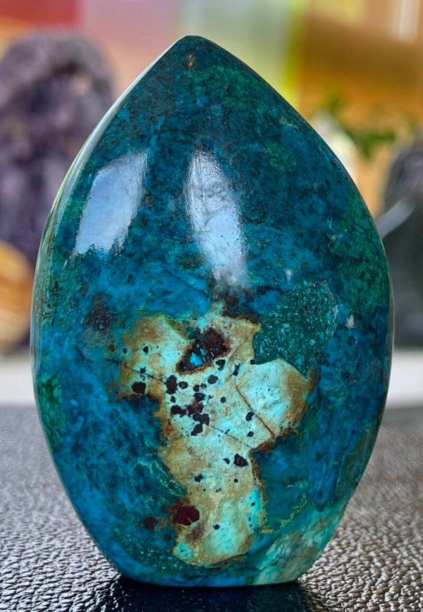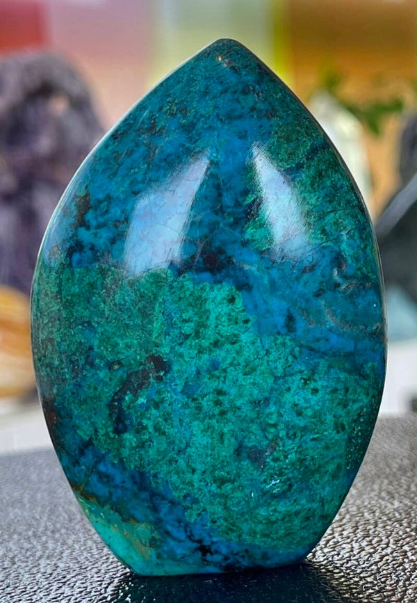 Chrysocolla uit Peru, free form staand