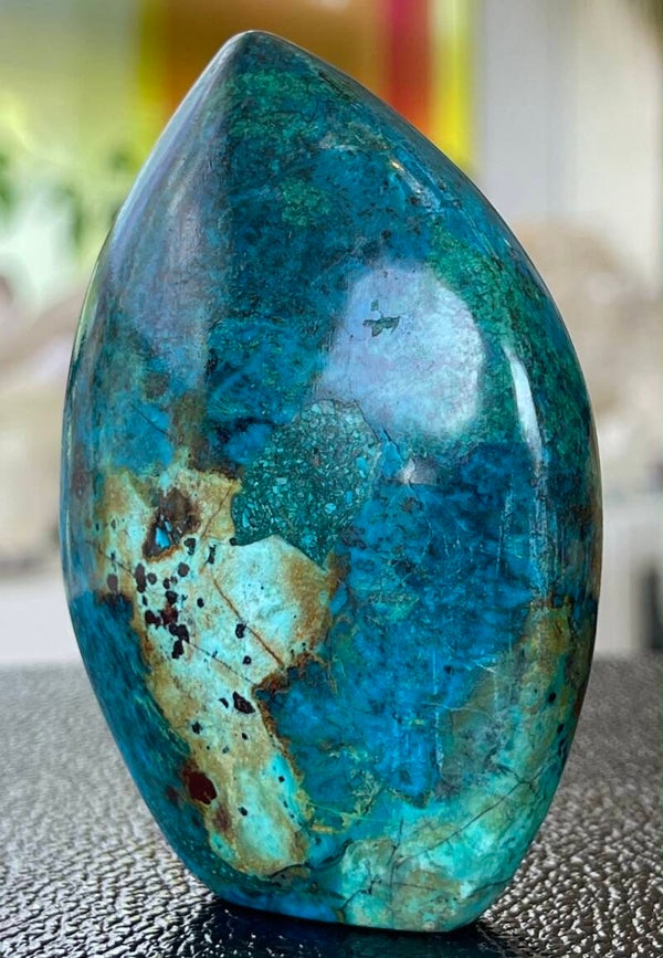 Chrysocolla free form sculptuur uit Peru, staand
