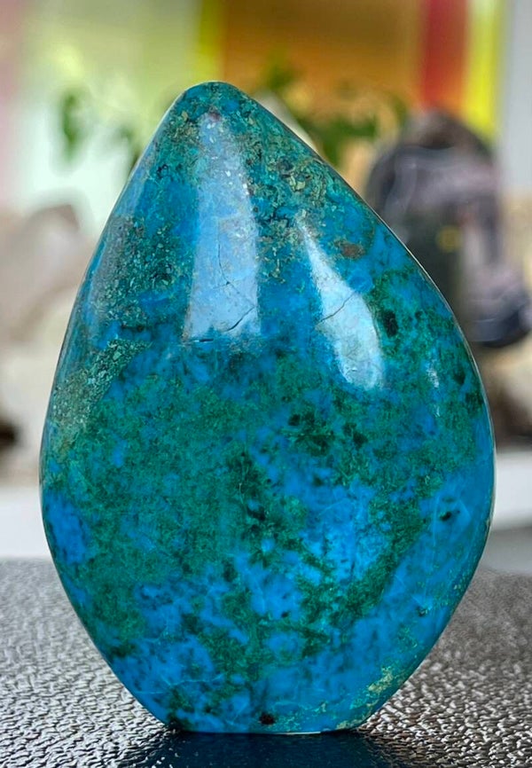 Chrysocolla zorgt voor balans en innerlijk evenwicht en werkt activerend of kalmerend al naar gelang wat nodig is in een bepaalde situatie. Als men weinig energie heeft en zich futloos voelt, werkt het activerend, geeft kracht en zet aan tot handelen. Als men nerveus of gespannen is werkt de steen kalmerend en verlicht overprikkeldheid en stress.