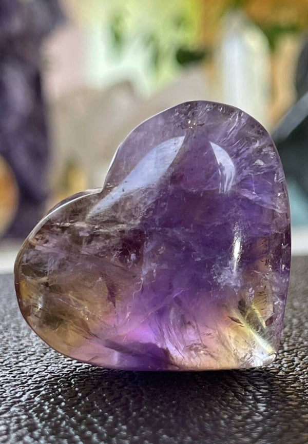 Ametrien bestaat uit een combinatie van Amethist en Citrien en verenigt de eigenschappen van deze twee stenen in zich. De opbeurende en verwarmende energie van Citrien en de beschermende en zuiverende werking van Amethist. Geeft innerlijke rust en gelatenheid.