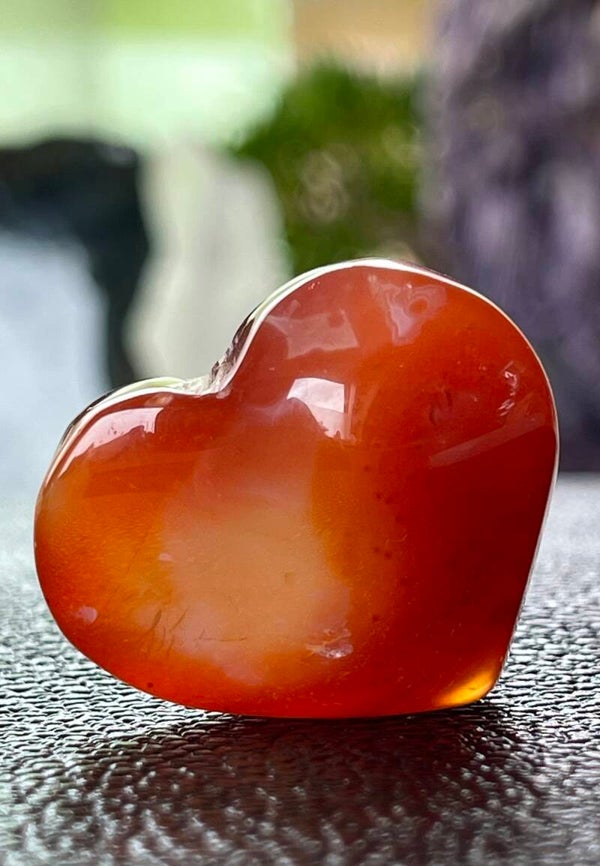 Prachtig drusy Carneool hartje met open gekristalliseerd deel, klein