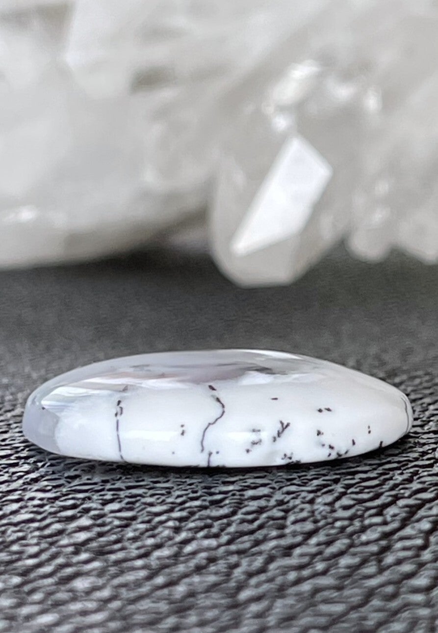 Dendriet Agaat met Merliniet helpt de donkere kanten van je persoonlijkheid te zien en te accepteren door het begrip dat er altijd een combinatie is van donker en licht, Yin en Yang.
