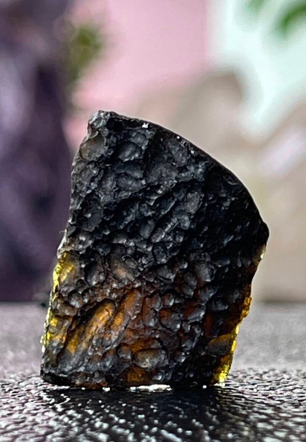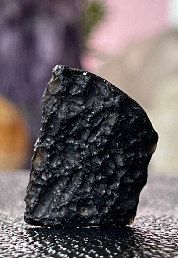 Ruw stukje natuurlijke Tektiet uit Tibet met certificaat, klein, sommige foto's zijn tegen het licht in gefotografeerd