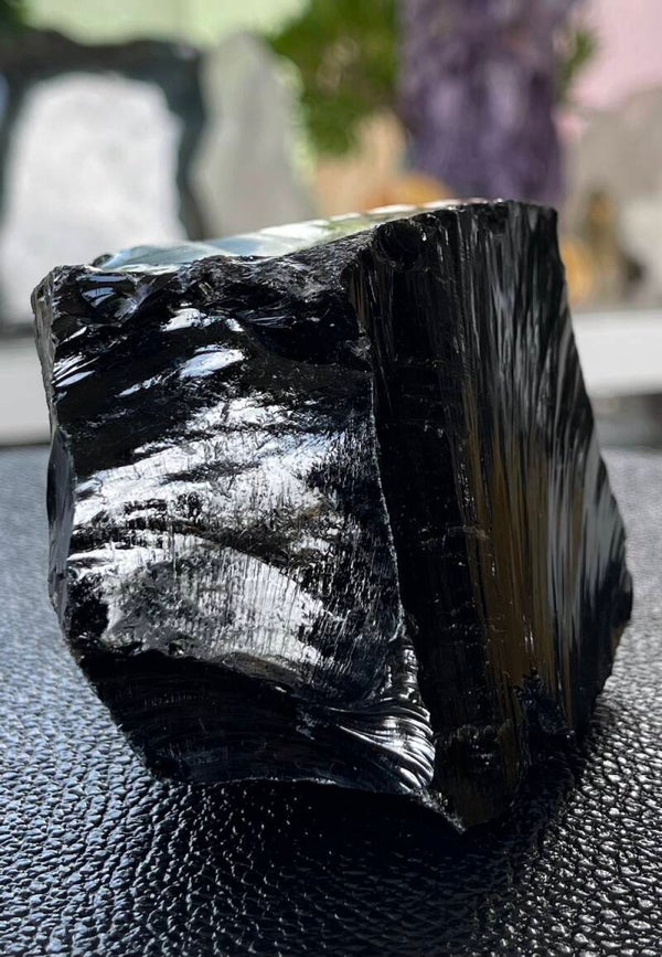 Ruw stuk zwarte Obsidiaan uit Brazilië, medium tot groot