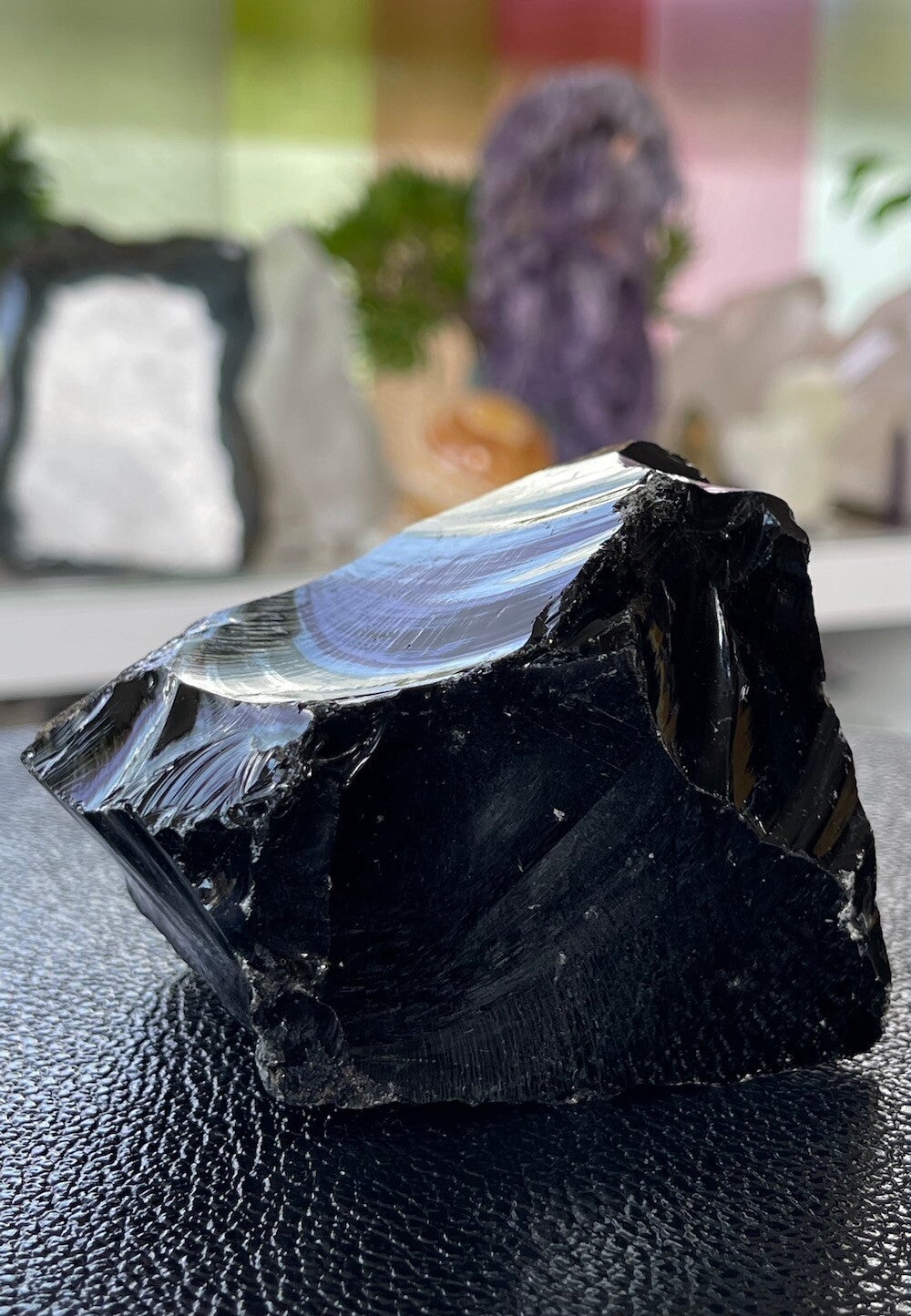 Obsidiaan is een sterk inzichtgevende en reinigende steen en stimuleert persoonlijke ontwikkeling door (zelf)inzicht en het opruimen van bagage uit het verleden. Het brengt de waarheid, de kern of oorzaak van dingen (of ziekte) en verdrongen en weggestopte ervaringen en emoties naar boven.