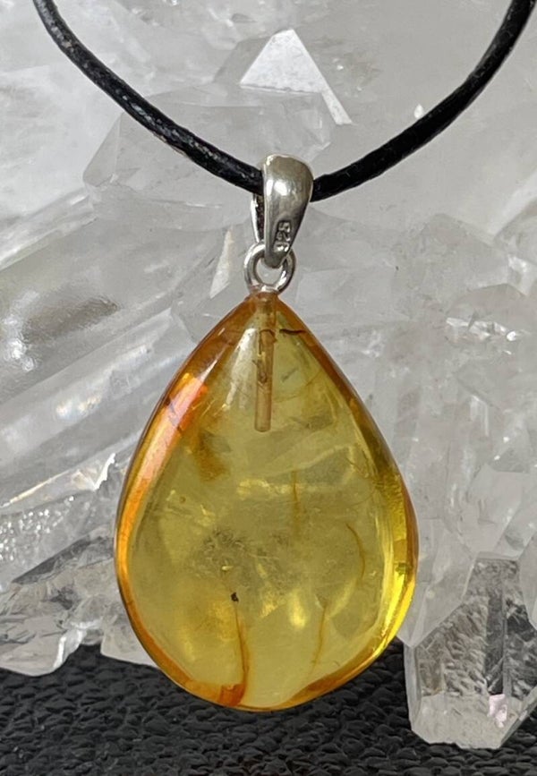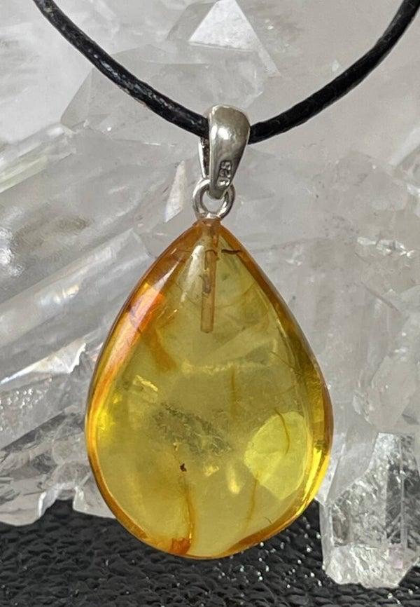 Mooie Barnsteen hanger druppel met zilveren oogje, met veter
