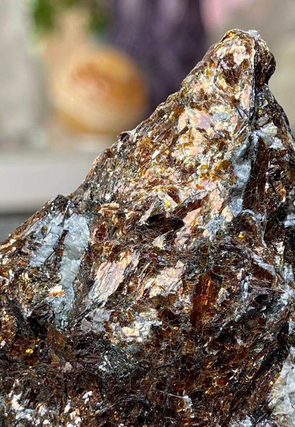 De schitterende goudkleurige glans van de steen is moeilijk op de foto te zien.