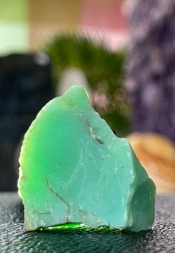 Chrysopraas stimuleert een positieve houding, acceptatie en vertrouwen in zowel jezelf als het grotere geheel. De steen versterkt creativiteit en waardering voor mooie dingen en kunst.