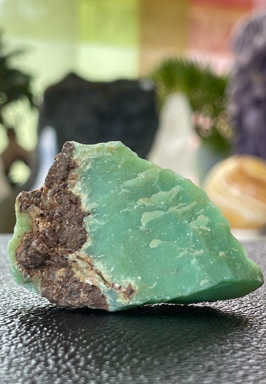 Chrysopraas stimuleert een positieve houding, acceptatie en vertrouwen in zowel jezelf als het grotere geheel. De steen versterkt creativiteit en waardering voor mooie dingen en kunst.