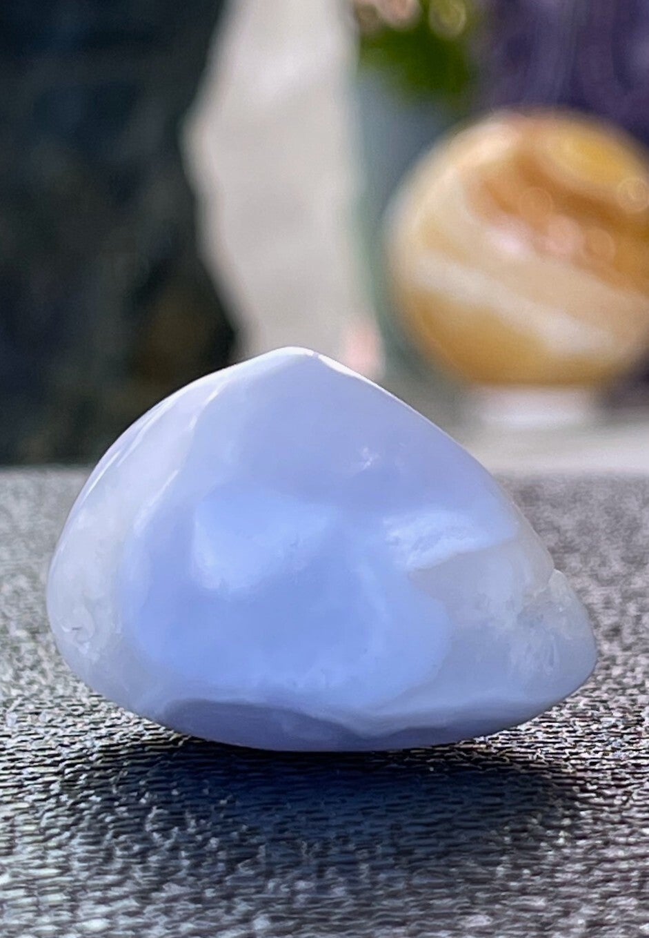 Blauwe Chalcedoon open trommelsteen uit Malawi, medium