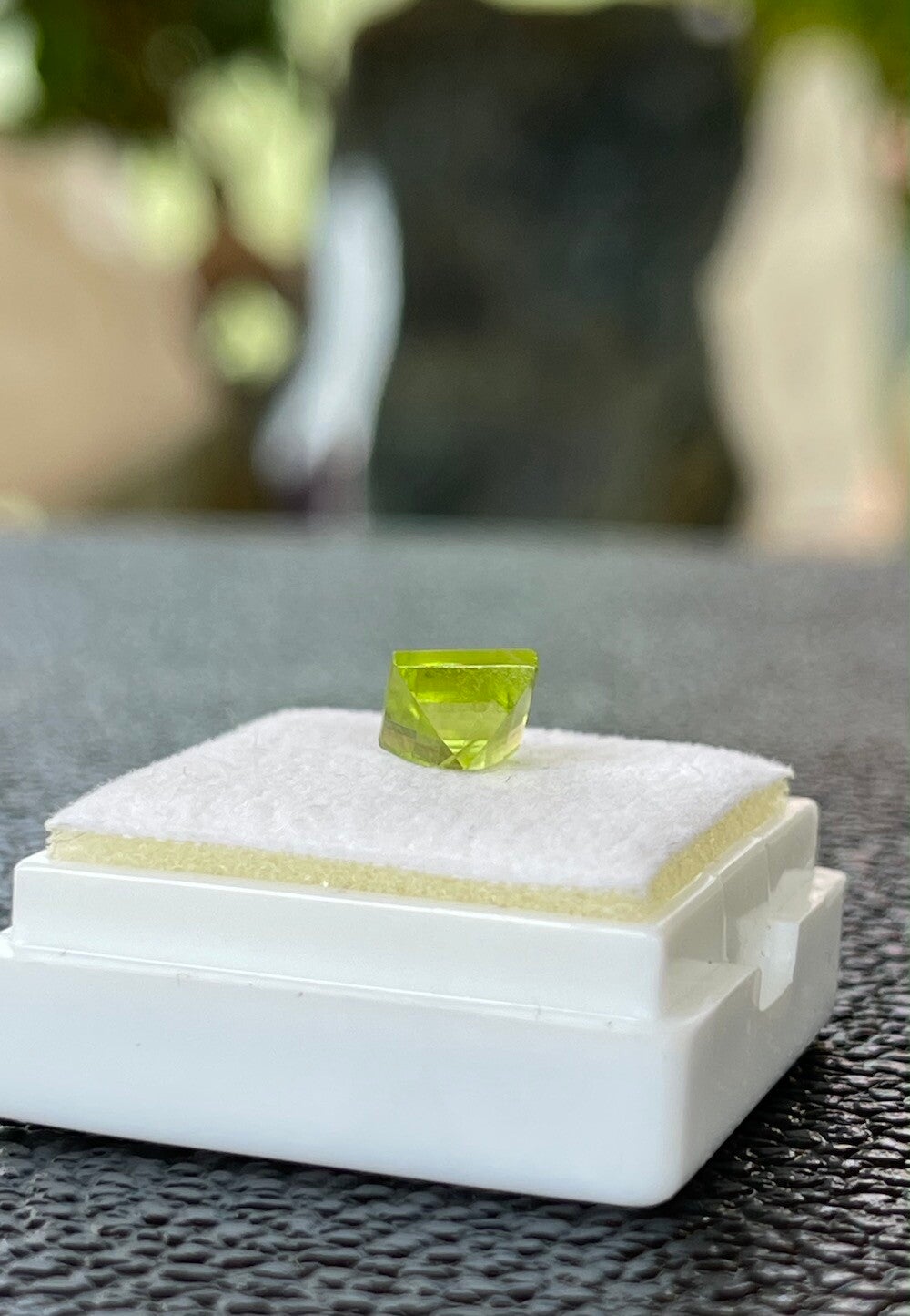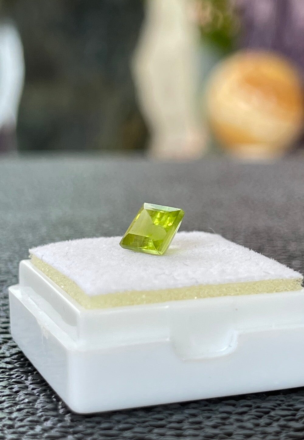 Peridoot edelsteen facet geslepen vierkantvorm met beetje inclusion, uit Arizona, klein