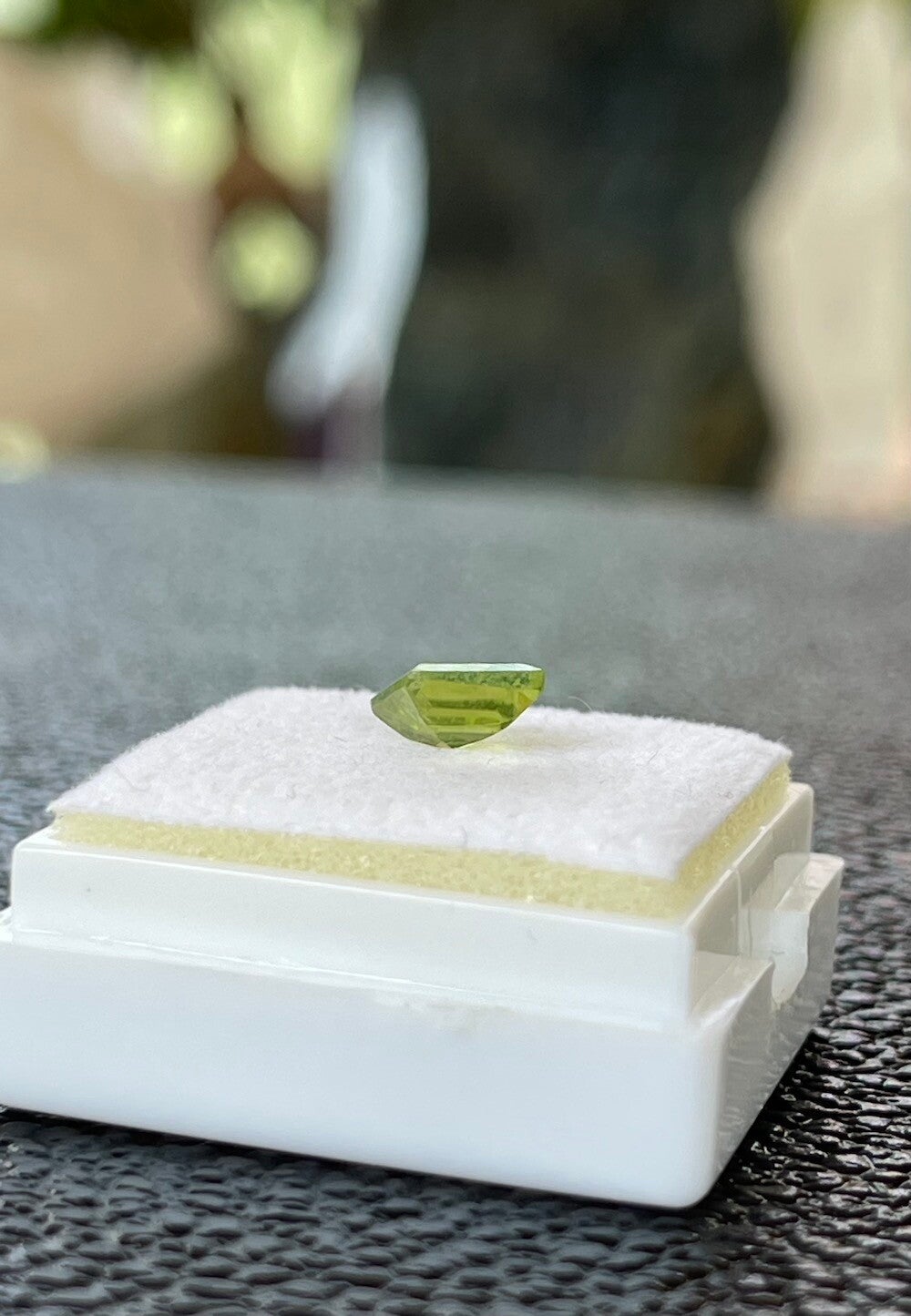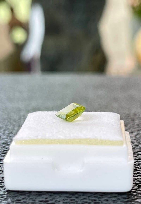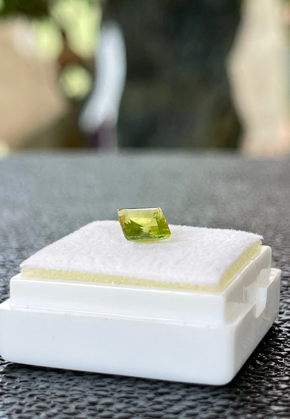 Peridoot edelsteen facet geslepen vierkantvorm met beetje inclusion, uit Arizona, klein