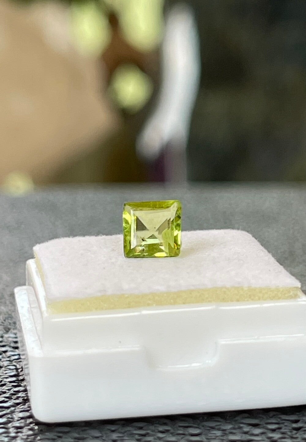 Peridoot edelsteen facet geslepen vierkantvorm met beetje inclusion, uit Arizona, klein