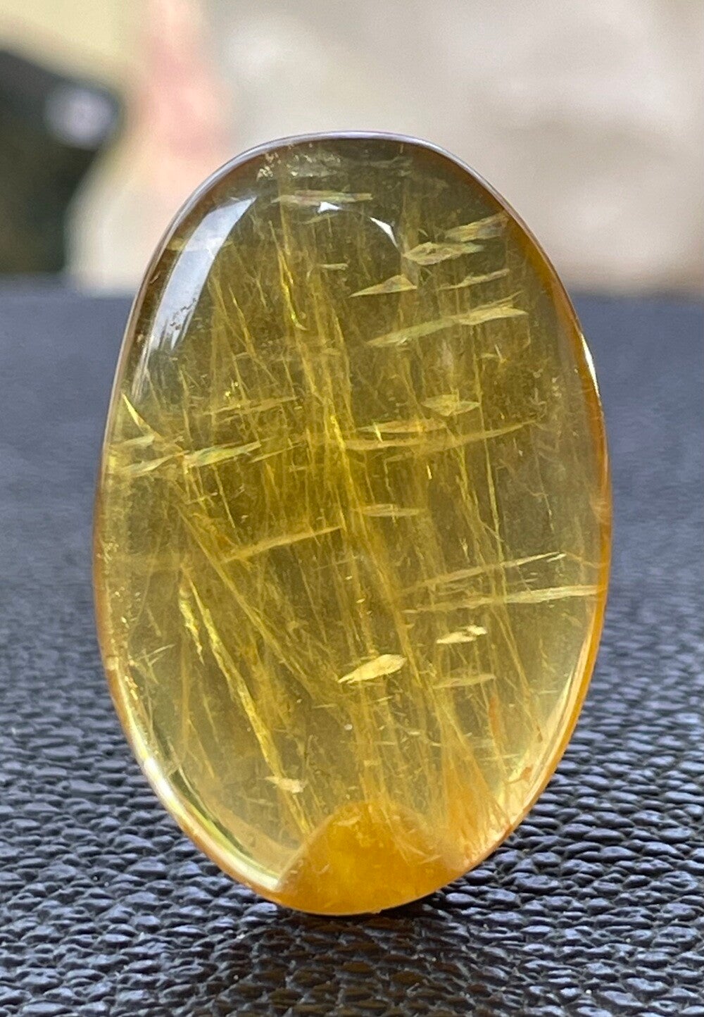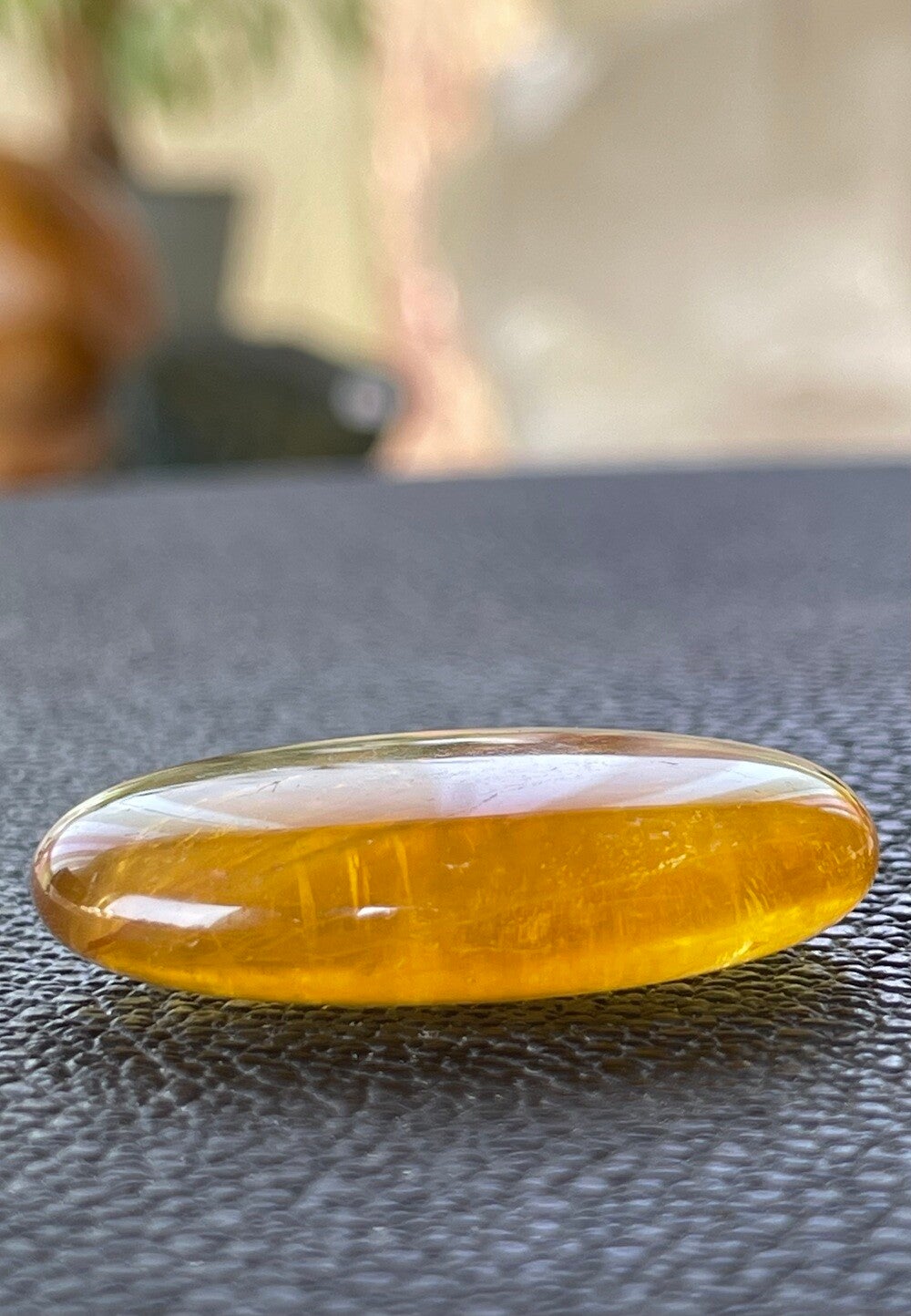 Geel-gouden Honing Calciet platte knuffelsteen of zaksteen
