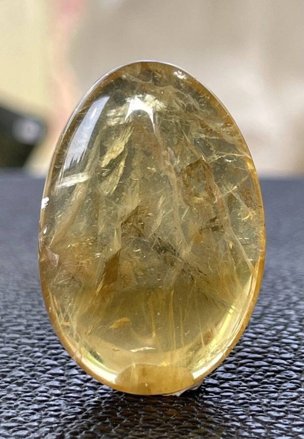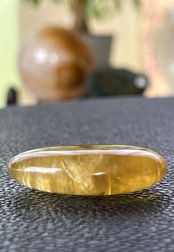 Geel-gouden Honing Calciet platte knuffelsteen of zaksteen