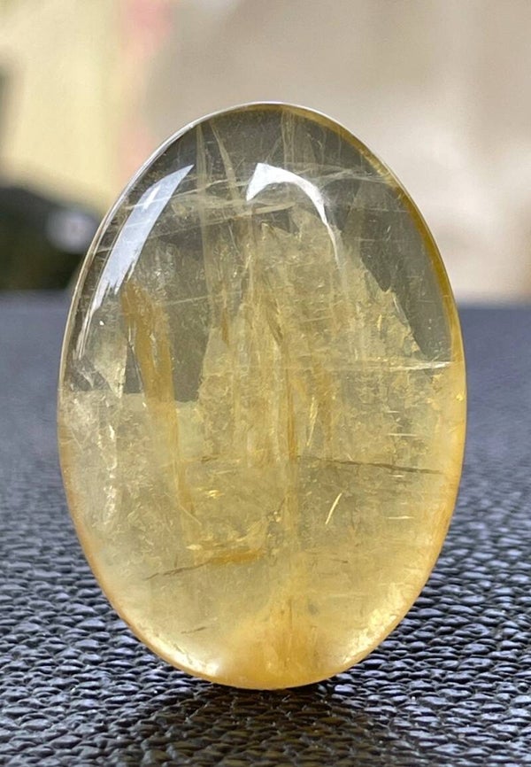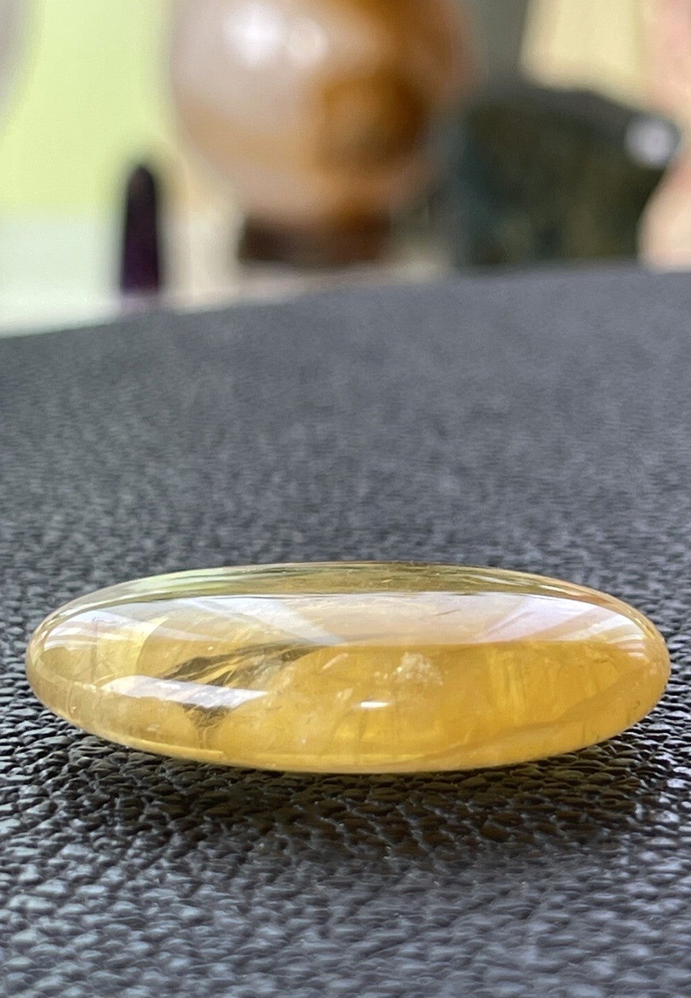 Geel-gouden Honing Calciet platte knuffelsteen of zaksteen