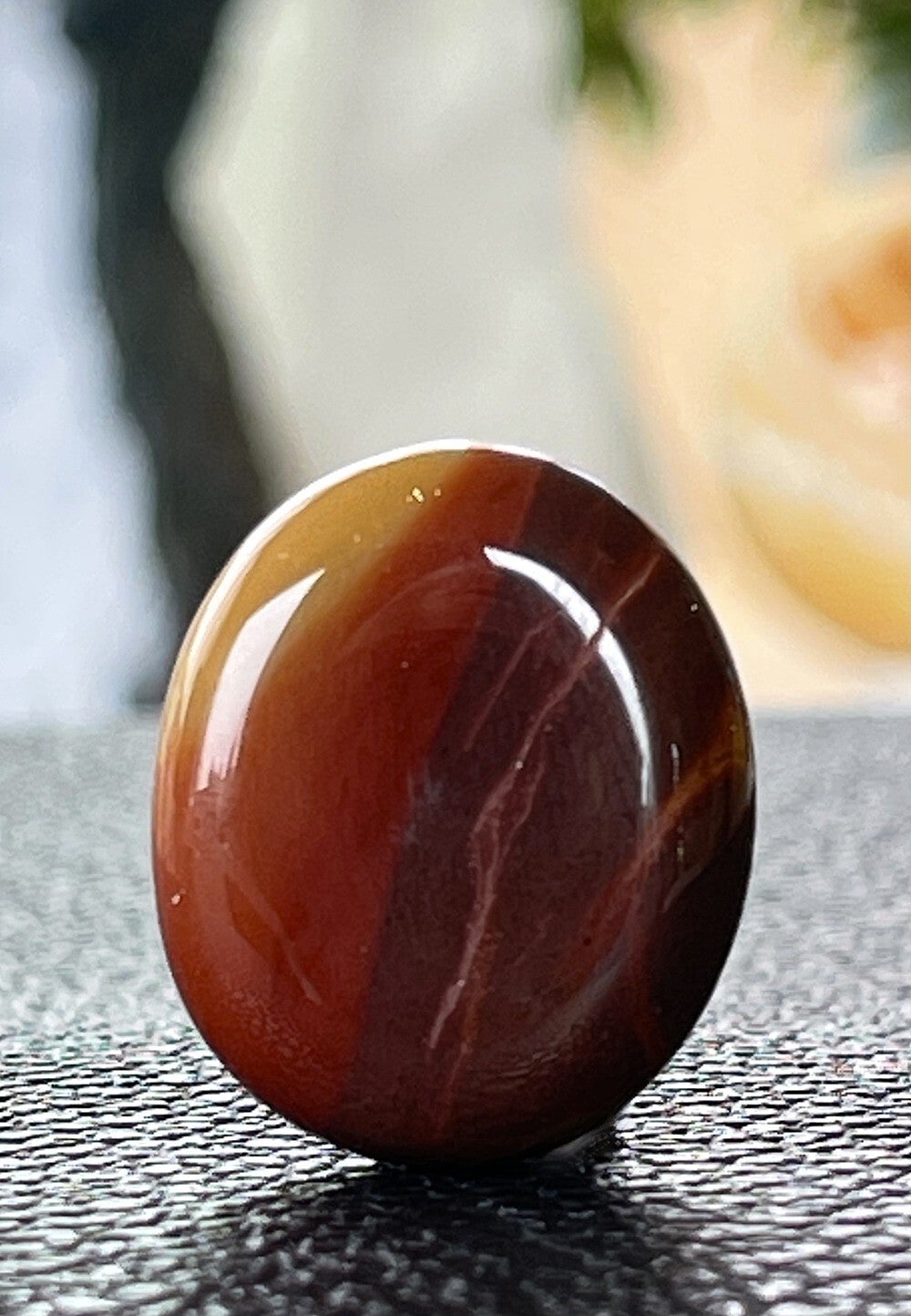 Mookaiet knuffelsteen plat, heel klein