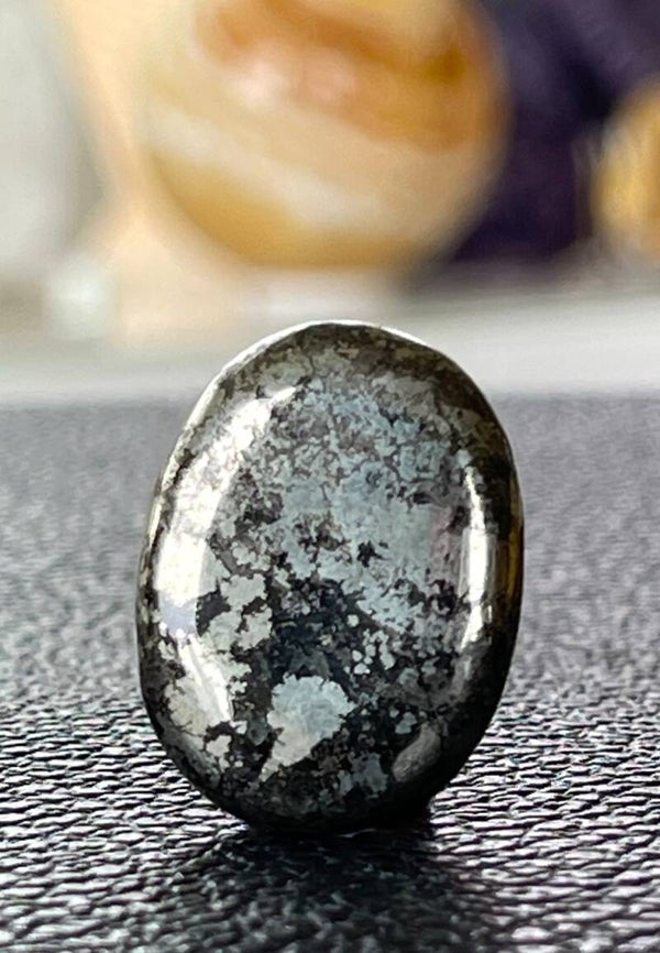 Pyriet platte knuffelsteen of zaksteen, heel klein