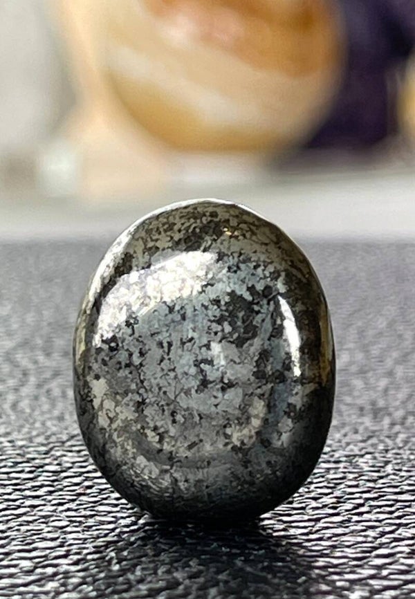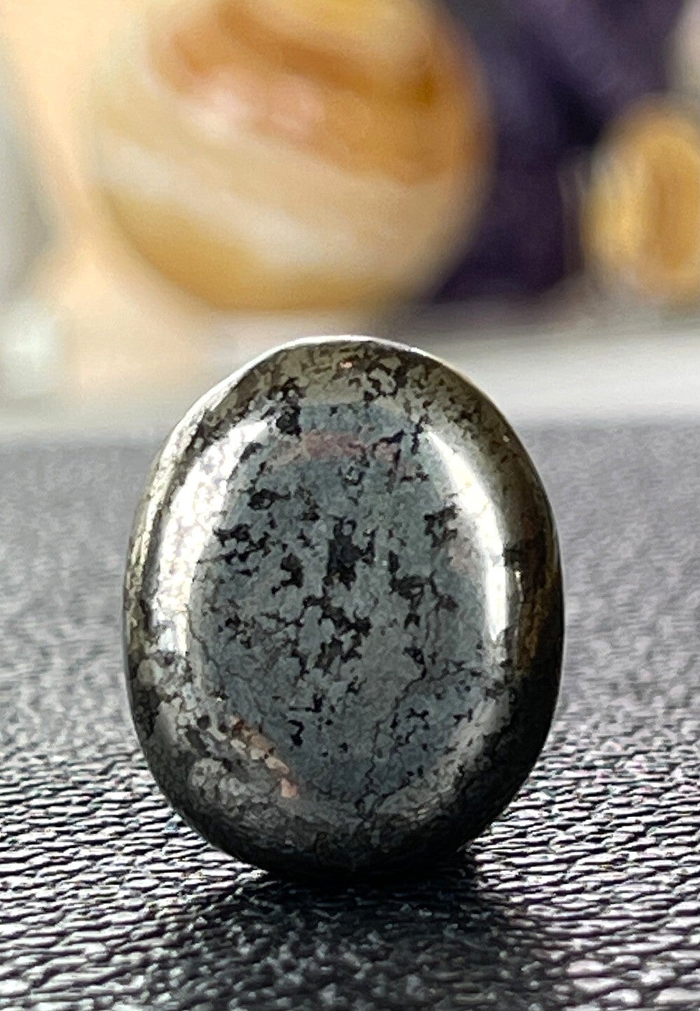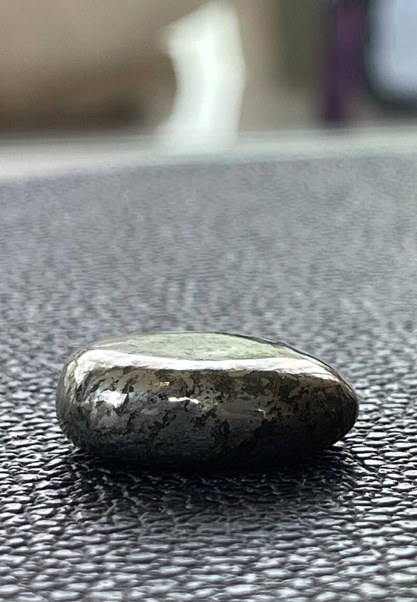 Pyriet platte knuffelsteen of zaksteen, heel klein