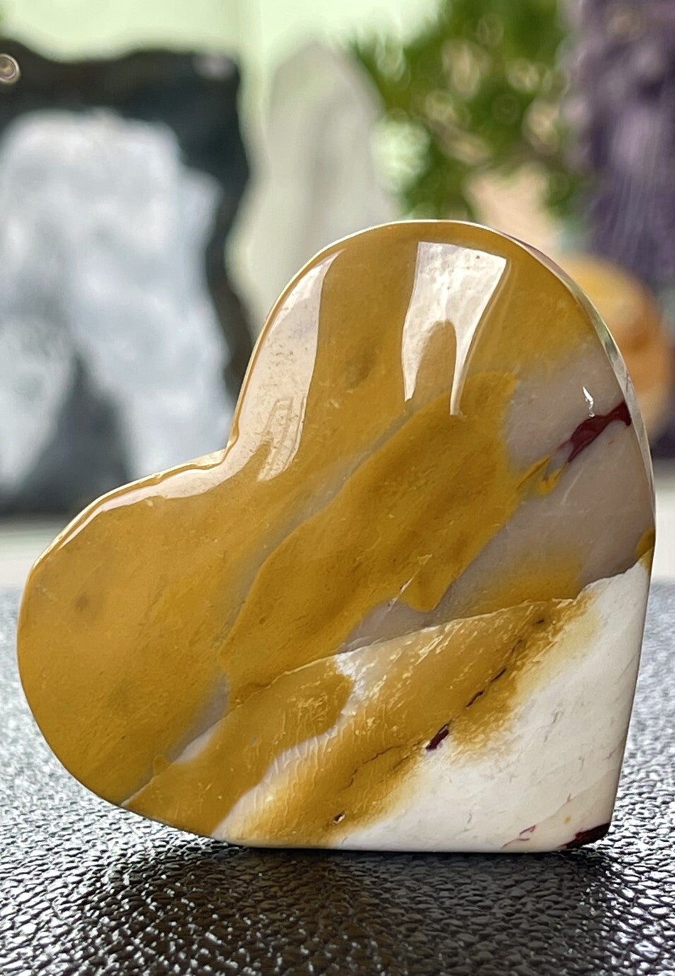 Daarnaast geeft de steen zelfvertrouwen, eigenliefde en daadkracht. Tevens helpt hij bij het verwerken van oude, zware emoties. Mookaïet lost ook karmische blokkades op, zoals verlies en liefdesverdriet en geeft weer eigenliefde, daadkracht en inzicht om opnieuw te beginnen.