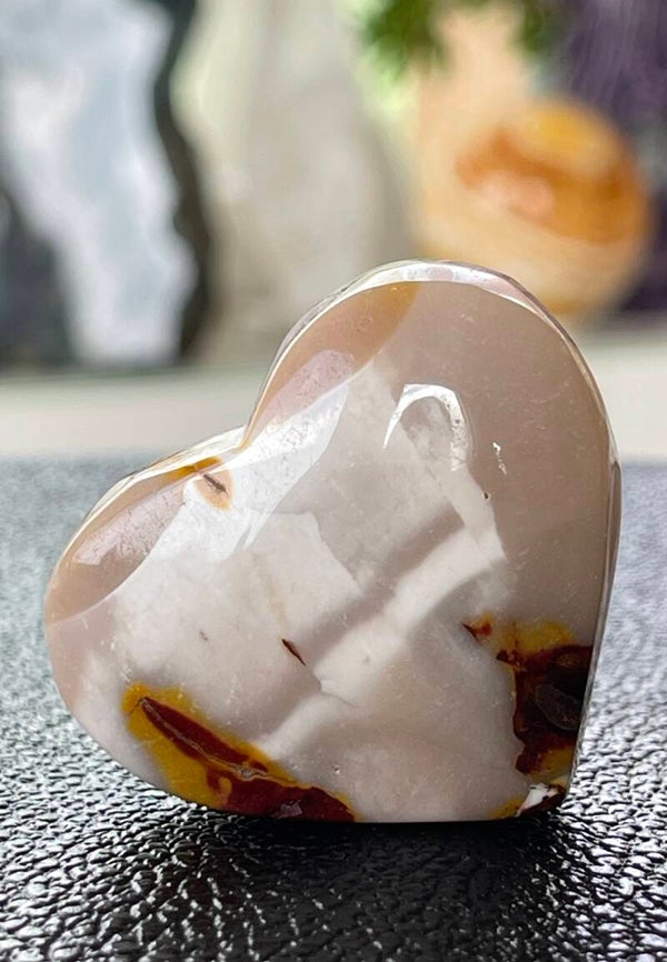 Daarnaast geeft de steen zelfvertrouwen, eigenliefde en daadkracht. Tevens helpt hij bij het verwerken van oude, zware emoties. Mookaïet lost ook karmische blokkades op, zoals verlies en liefdesverdriet en geeft weer eigenliefde, daadkracht en inzicht om opnieuw te beginnen.