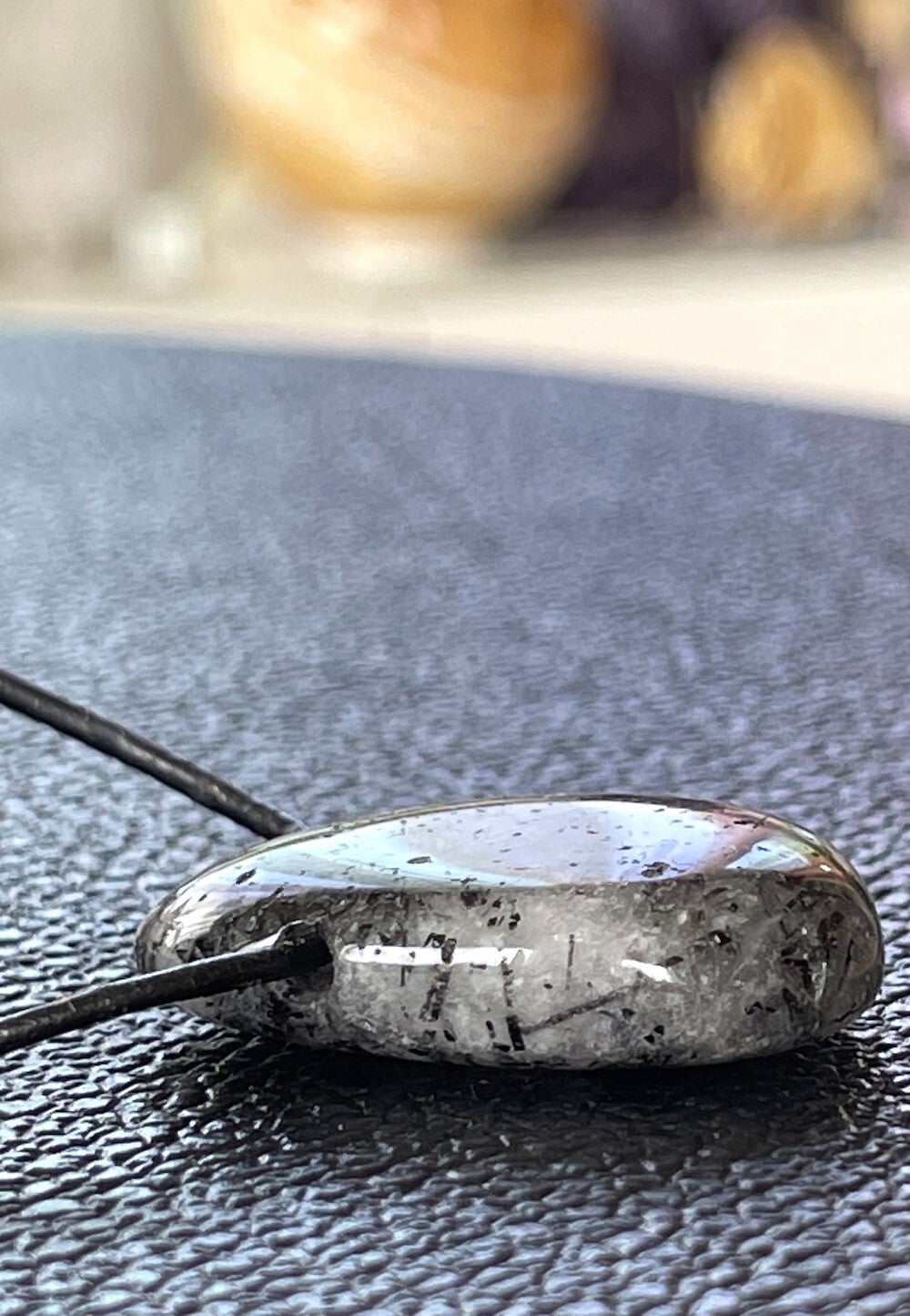 Toermalijnkwarts hanger doorboord, met veter